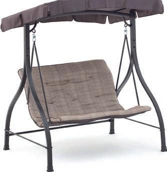 Dondolo Haiti cm 160x112x163(H) seduta cm 120x60 schienale cm 71(H) struttura in tubolare di ferro verniciato a polvere epossidica di colore marrone cuscino in poliestere di colore beige tettuccio parasole inclinabile