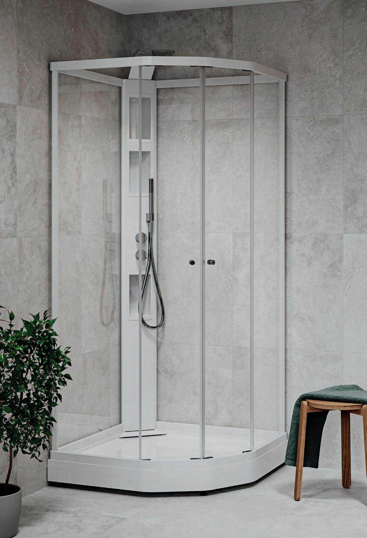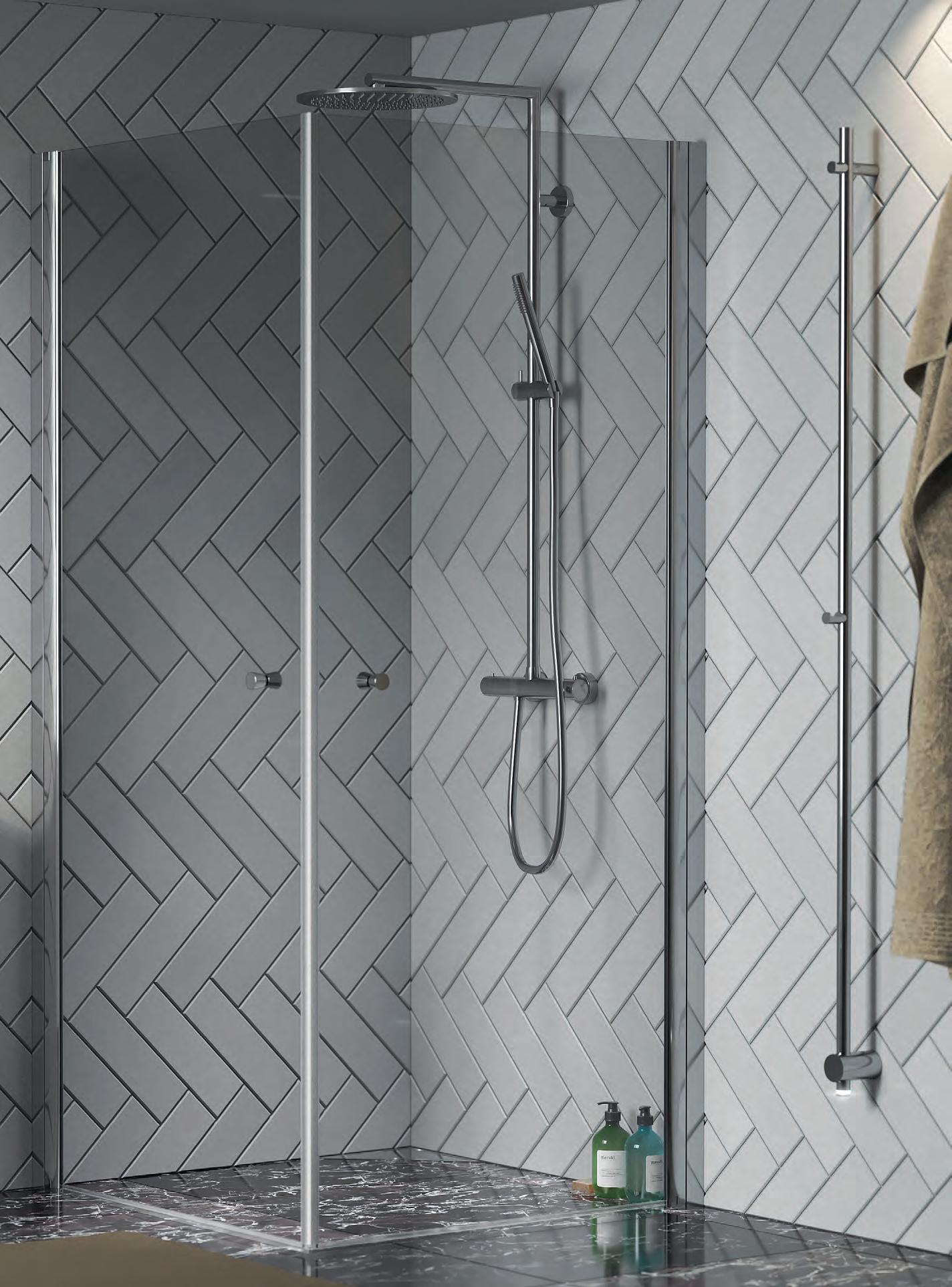 Med en Spirit Rett får du bedre plass inne i dusjen. Spirit Rett monteres i et av baderommets hjørner.