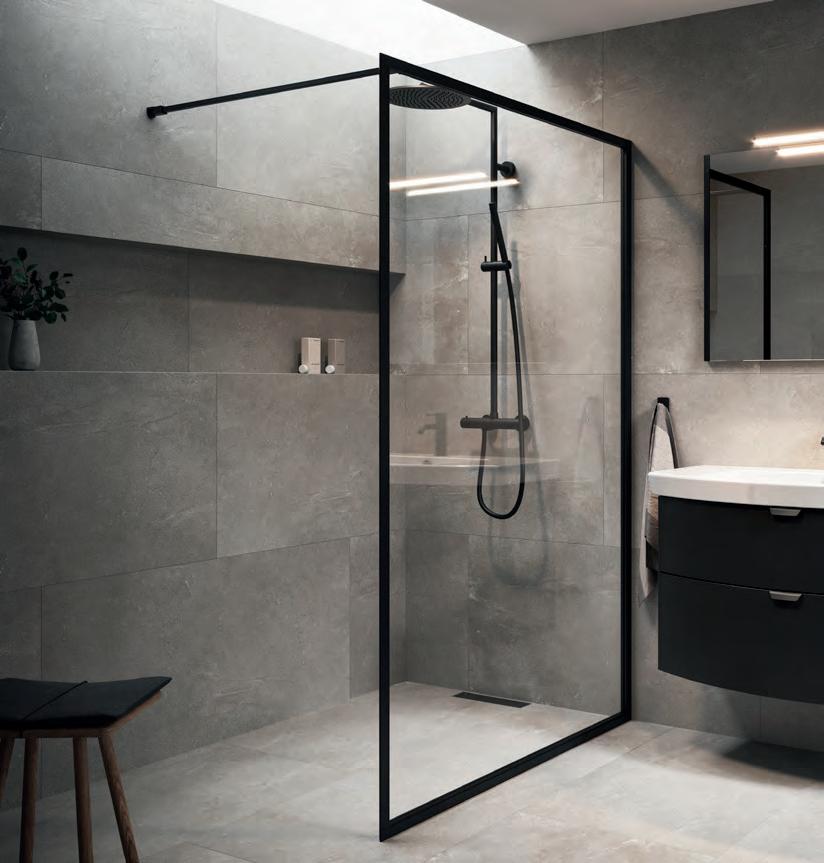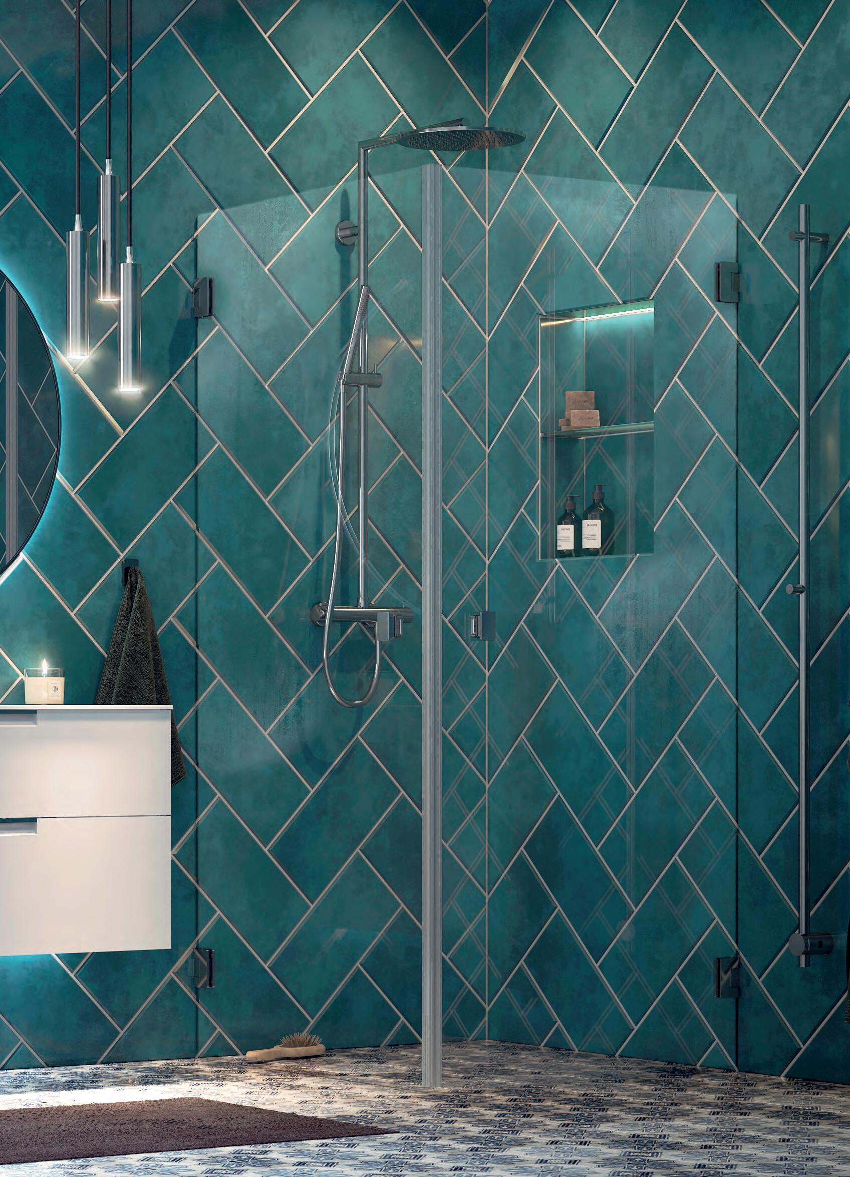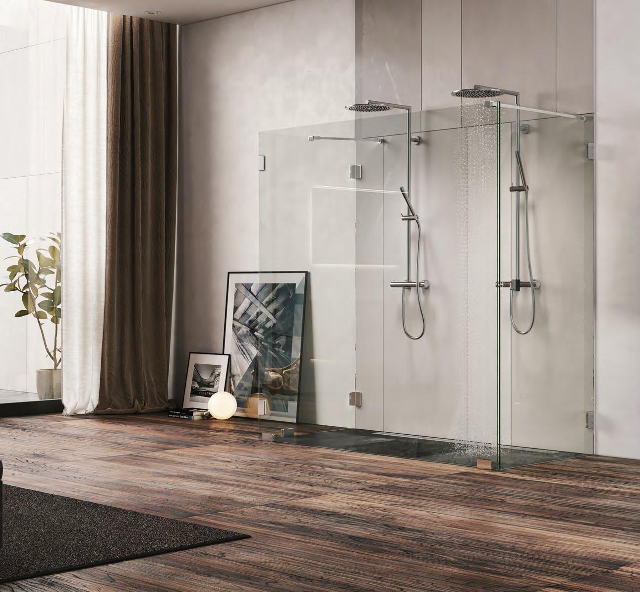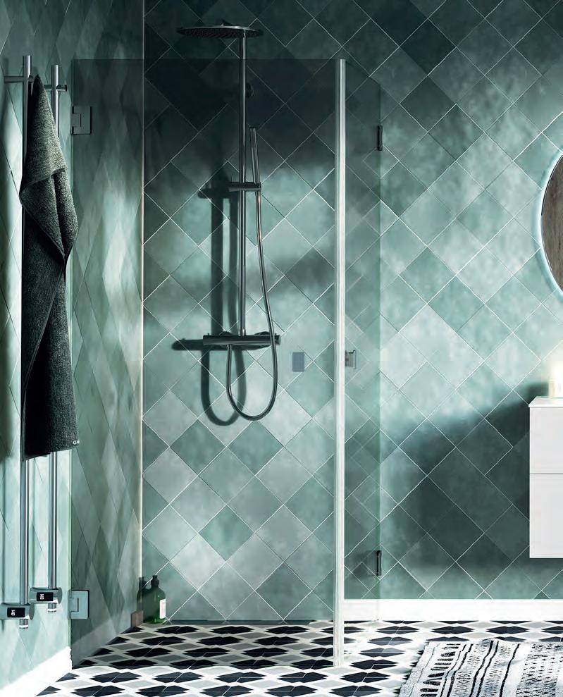 Glass og profiler er integrert i hverandre noe som gir en vakker linje i baderommet. Velg mellom våre fire glassalternativer: Klarglass, Screen, Ice og Tonet.