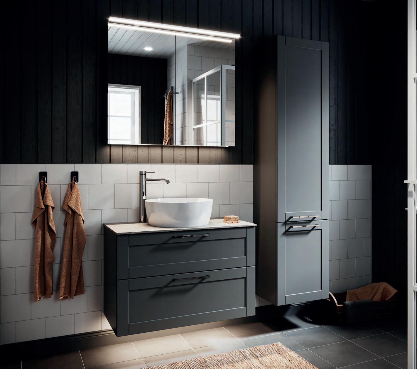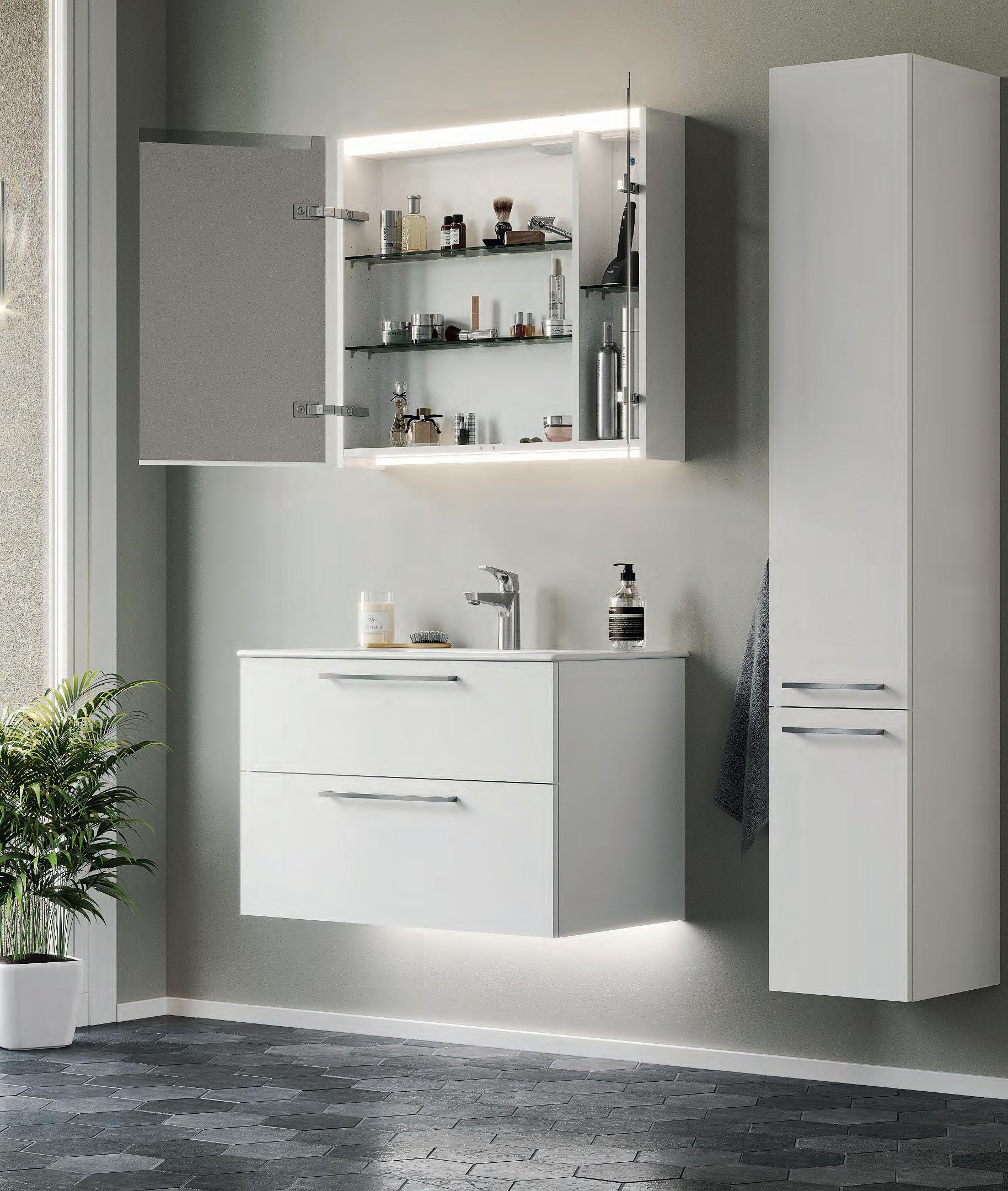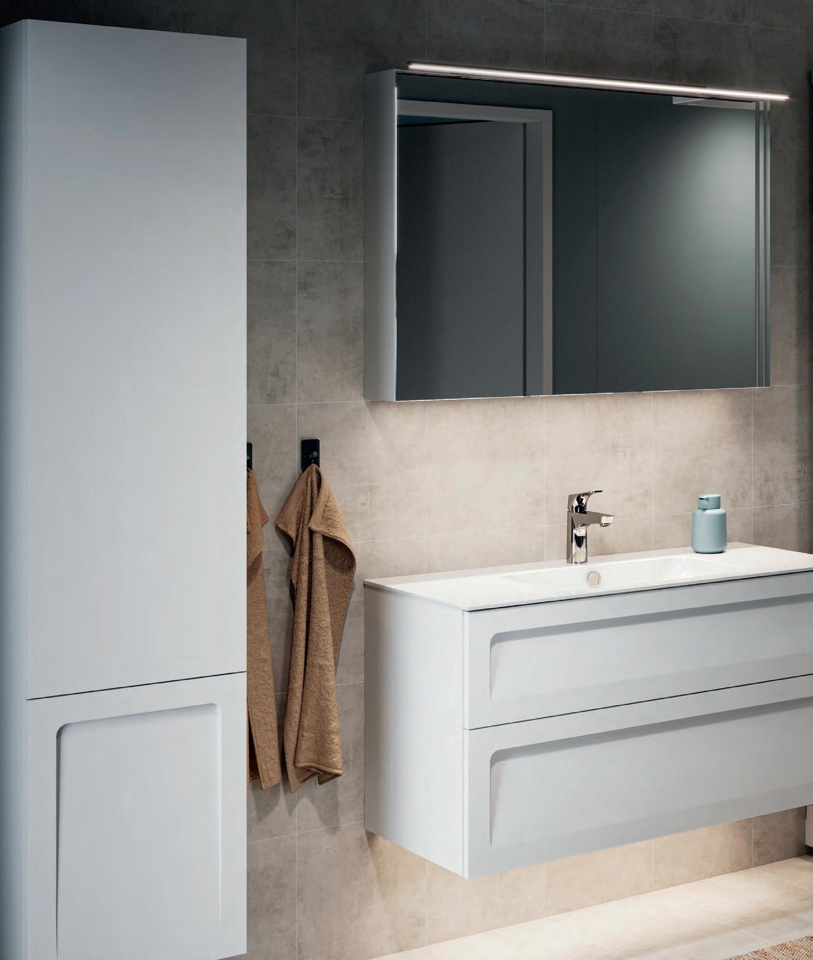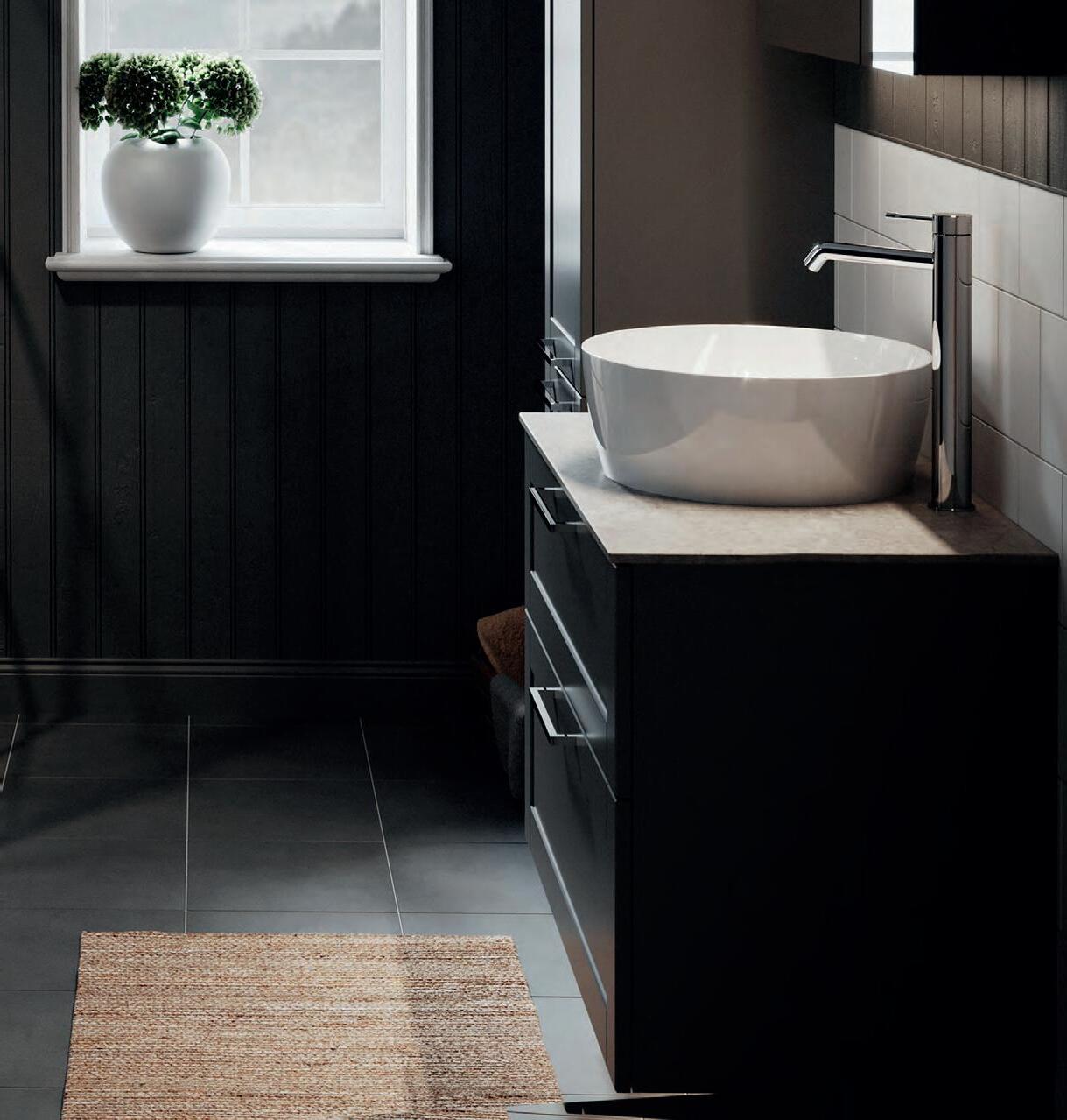 Møblene i baderommet skal kunne leve opp til de samme forventningene du har til de øvrige møblene i boligen. Vi har 2 elegante møbelserier av høyeste kvalitet å velge mellom.