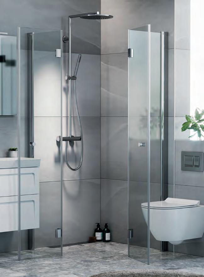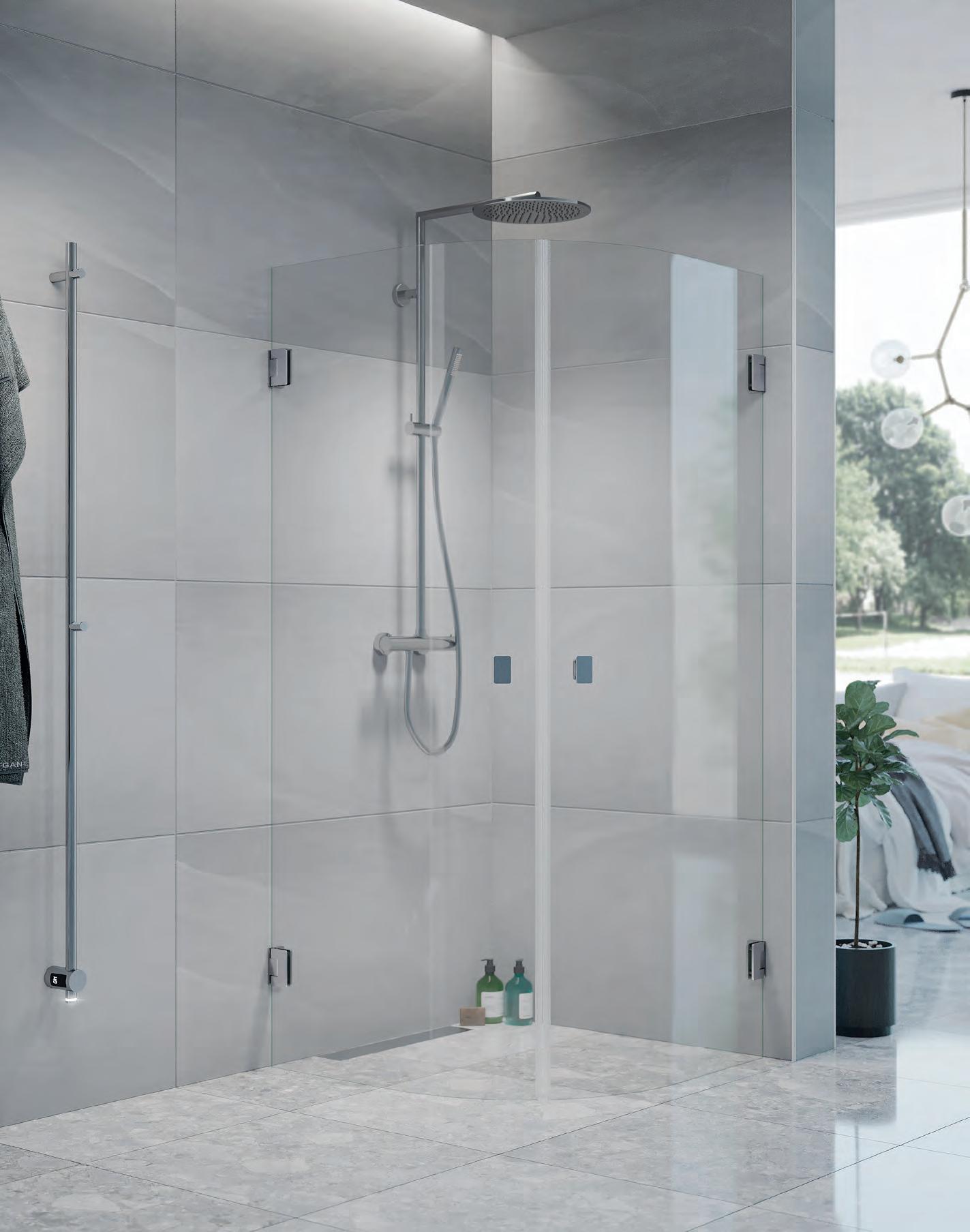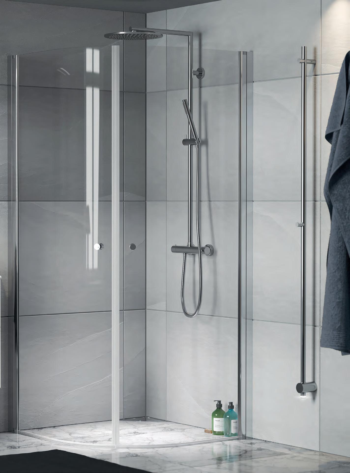 Vår Spirit J gir en mykere følelese i ditt baderom og passer såvel i store som små baderom. Begge dørene kan slåes inn, noe som gir god plass når dusjen ikke brukes. Perfekt dersom du ønsker å erstatte ditt badekar med en dusjløsning. Da kommer avløpet inne i dusjen.