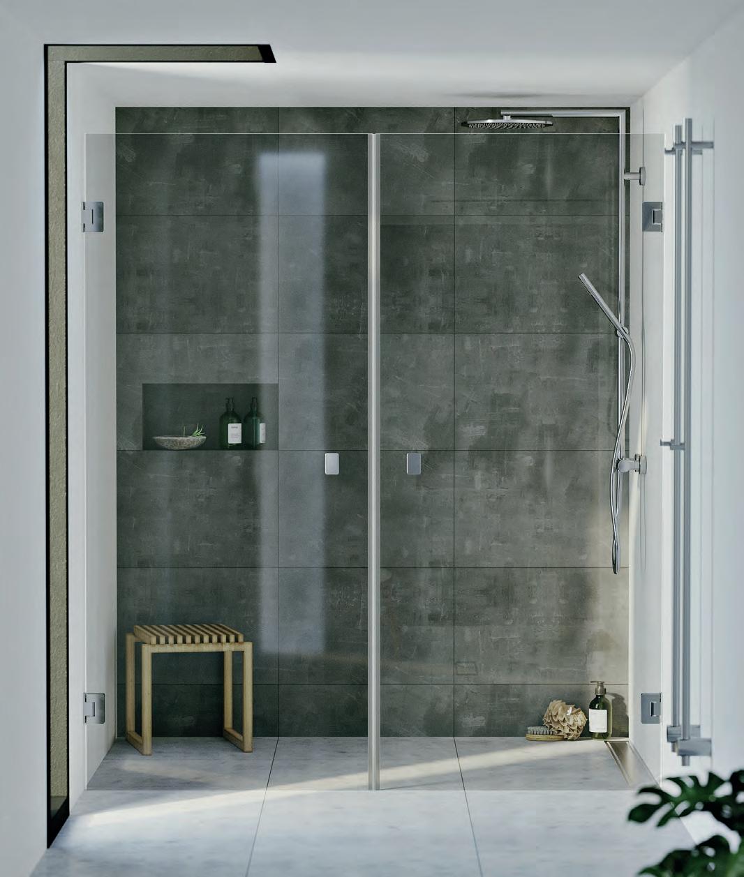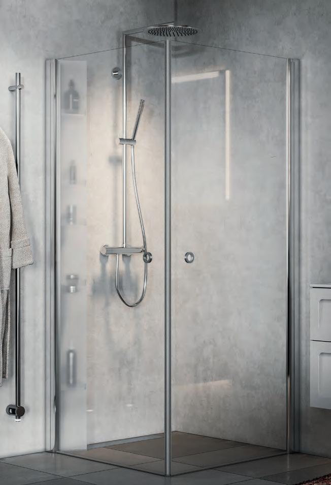 Spirit Swing består av 1 dør og 1 fastvegg. Dette gjør Spirit Swing perfekt for deg som har f.eks. et skap eller vaskemaskin som er plasser helt inn til dusjen.