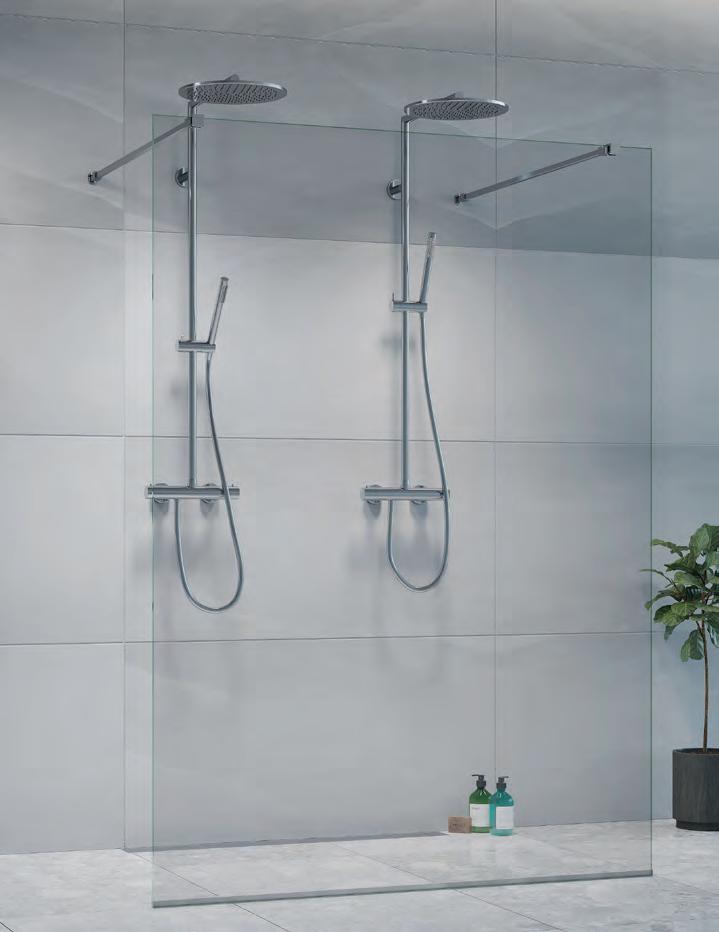 Våre skjermvegger gir en luftig og åpen følelese i baderommet. I vårt store sortiment finner du forhåpentlig vis en bra løsning uansett størrelse på baderommet. Et tips er å bruke en skjermvegg i et mindre baderom i og med at skjermveggen ikke har en dør som krever plass for å åpnes.