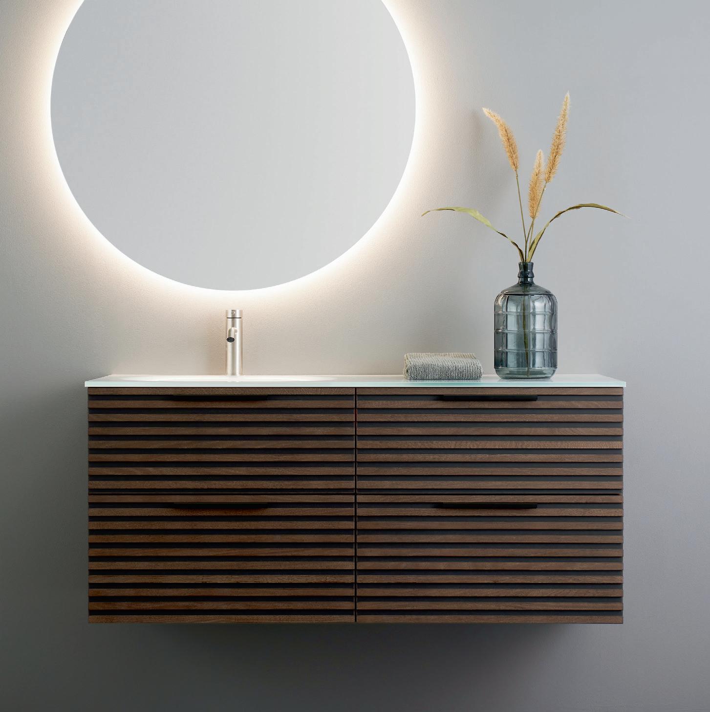 Naturmateriale som tre gir baderommet en herlig varme og tyngde. Nå får vår bestselgende møbelserie enda flere muligheter.