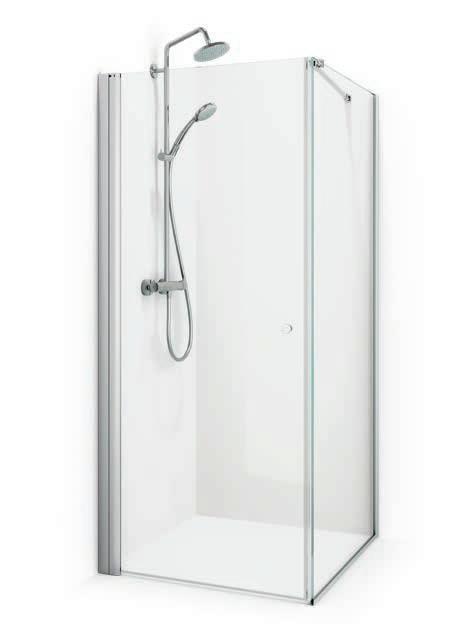 En dusj som består av en dør og en fast vegg, som gjør den perfekt hvis badet for eksempel har en servantskap eller vaskemaskin som er plassert rett ved siden av dusjen.