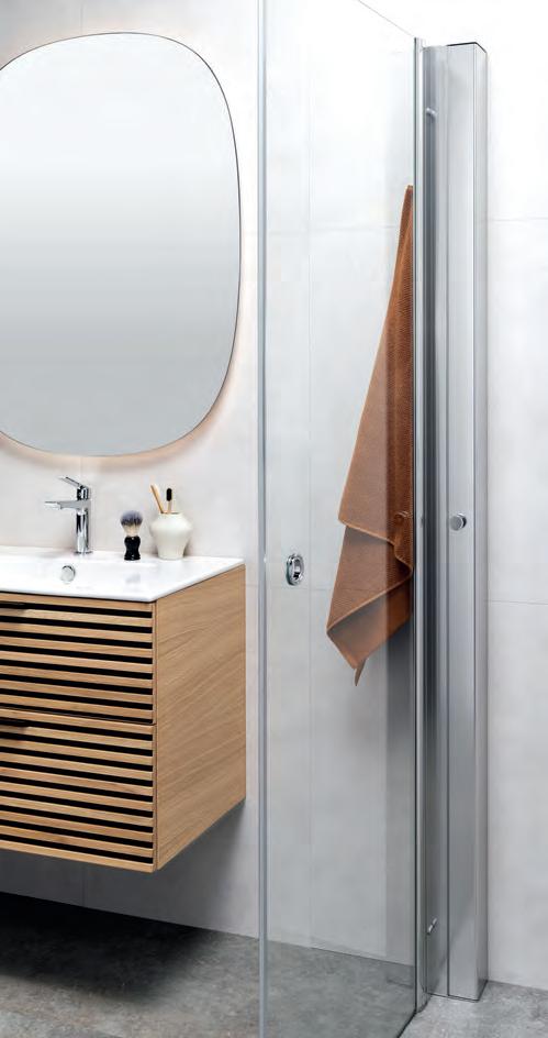 Fell inn glassdørene når du ikke bruker dusjen, for å skape mer plass på badet.