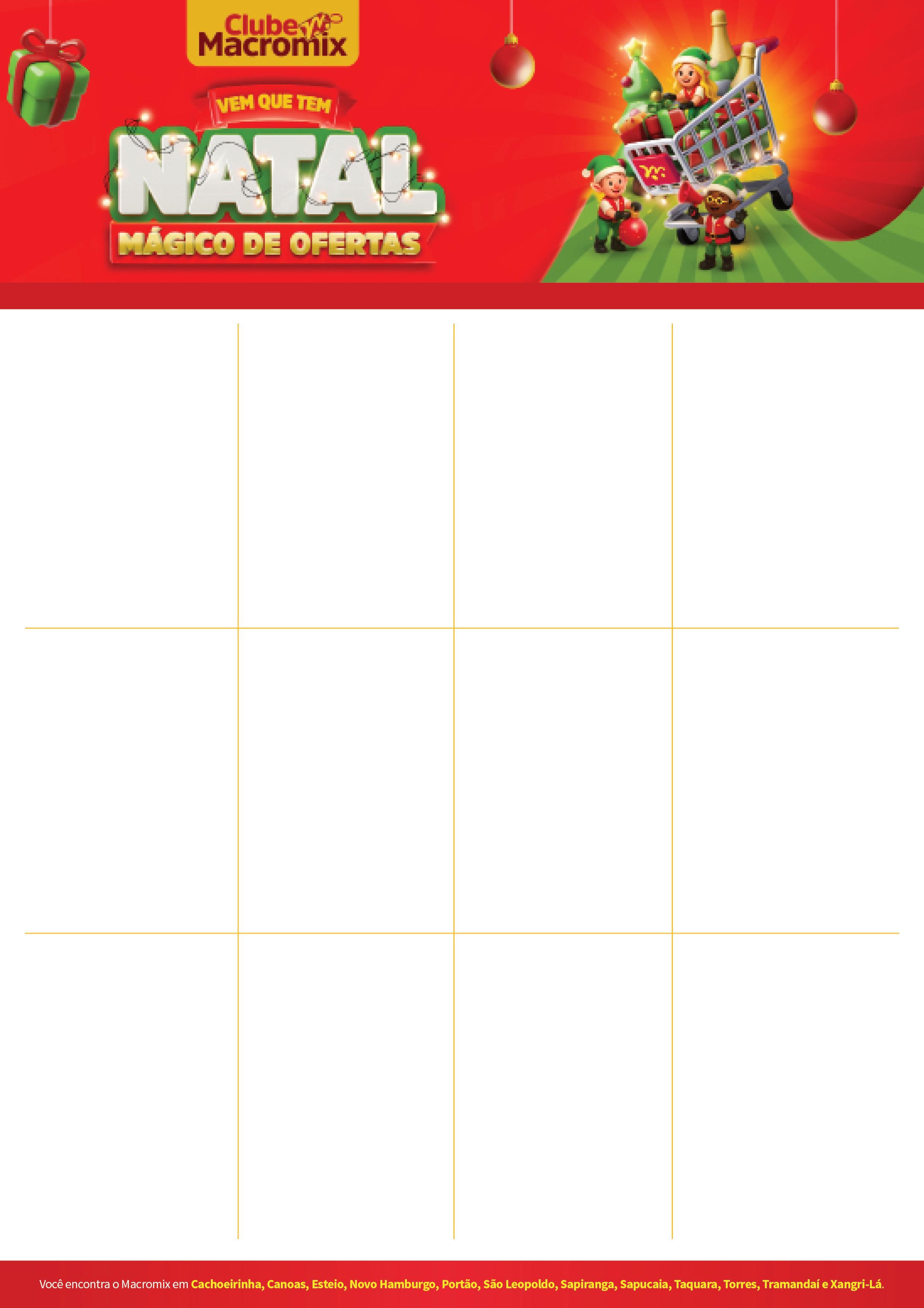 Exceto no Macromix em SapirangaExceto no Macromix em Novo Hamburgo, em Sapiranga, em São Leopoldo - Sharlau, em São Leopoldo - Centro, em Sapucaia do Sul, em Portão, em Cachoeirinha