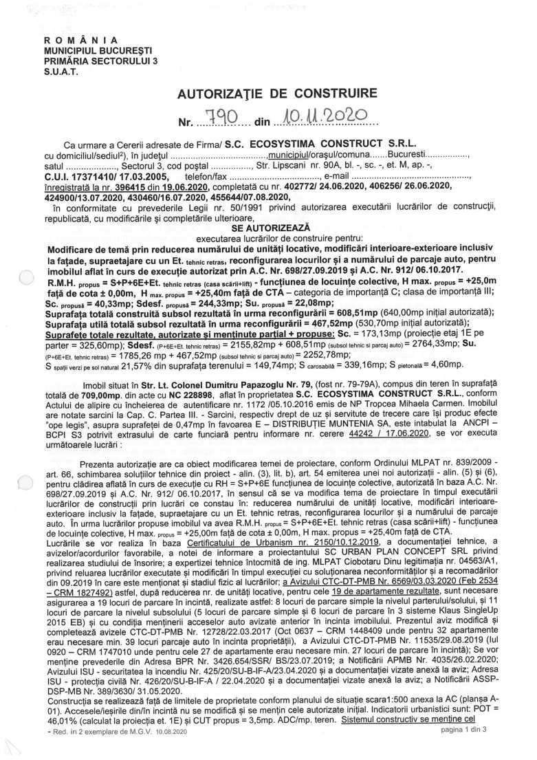 nr 2150 din 10 12 2019, eliberta de primăria sectorului 3 REGIM TEHNIC