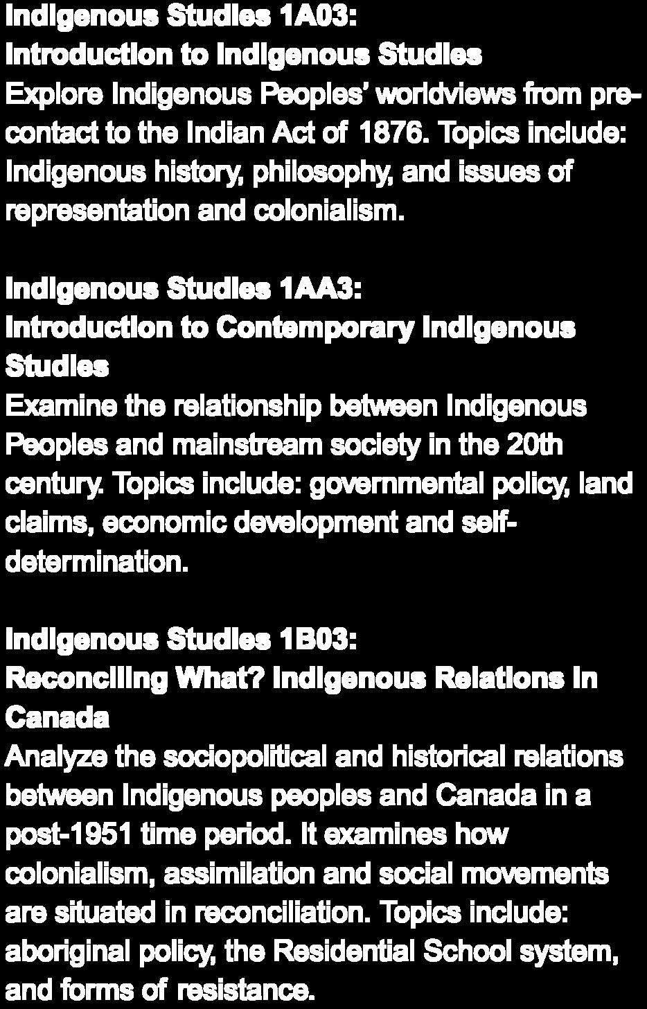 Indigenous Studies 1AA3: Introduction to Contemporary Indigenous Studies