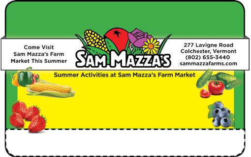 7 Family owned & operated. Taft Corner Shopping Center • W illiston (behind 99 Restaurant) • 878-3131• Call ahead for pick up! or pick up! andwiches • Deli Sandwiches Sweet Treats Taft Corner Shopping Center • W illiston (behind 99 Restaurant) • 878-3131 Expiration 9-15-2024 One per person. Cannot be combined with any other promotion. Tax excluded. FREE Bagel w/Cream Cheese with purchase of bagel & cream cheese Fresh Bagels • Cream Cheese • Breakfast Sandwiches • Deli Sandwiches Soups • Kids Combo Meals • Sweet Treats 64 Harvest Lane, Williston 802-872-7522 www.monkeydoplaygrounds.com monkeydovt 10% OFF ALL BIRTHDAY PARTIES Must be scheduled before September 30, 2024. Must present coupon. • Pick your Own Strawberries & Blueberries • Strawberry Festival - Saturday June 22nd • Live Music Nights 7/10, 17, 24, & 31 from 6-8pm Like us on Facebook for Event Details and Picking Info • August is Peak of the Season for Homegrown Veggies $2.00 off purchase of $10.00 or more Pick Your Own Strawberries or Blueberries! One coupon per person per season - Valid 2024 season In Store Bakery - Apple Cider Donuts daily! Homegrown Fresh Produce - Seasonal Flowering Plants VT & Specialty Foods – Gifts for Home & Garden