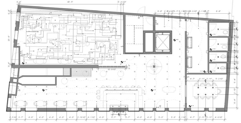 The site is a historical, brick masonry townhouse in Beacon Hill Boston, MA, adapted to serve as a boutique hotel and restaurant. The kitchen sits at the basement level, leaving the 2,700 SF ground level for dining, lounge and bar.
