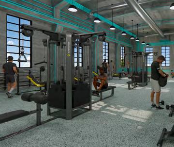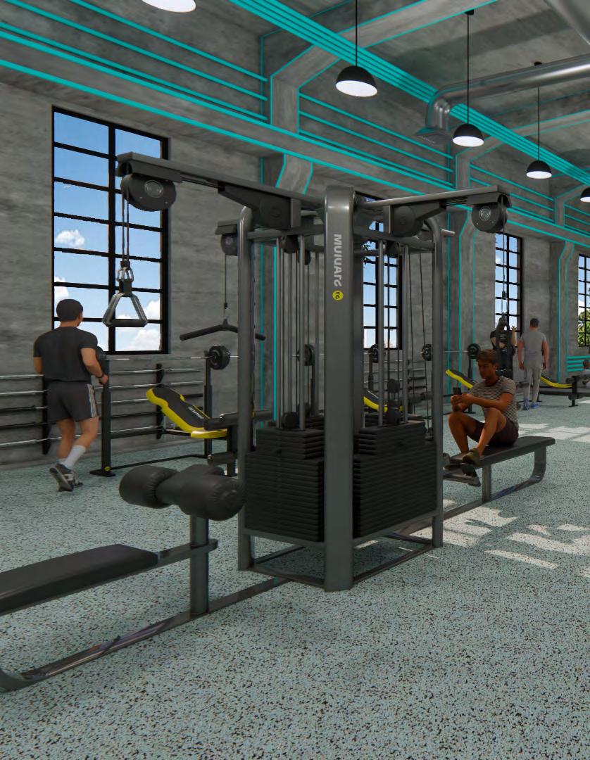 Integrating ‘the way of water’ with re-purposed, painted pipes that run in various motions throughout the gym are the highlight design for this project.