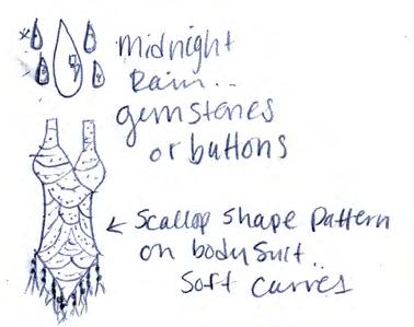 Embellished scallop pattern on bodysuitsoft curves, crystals and beaded fringe