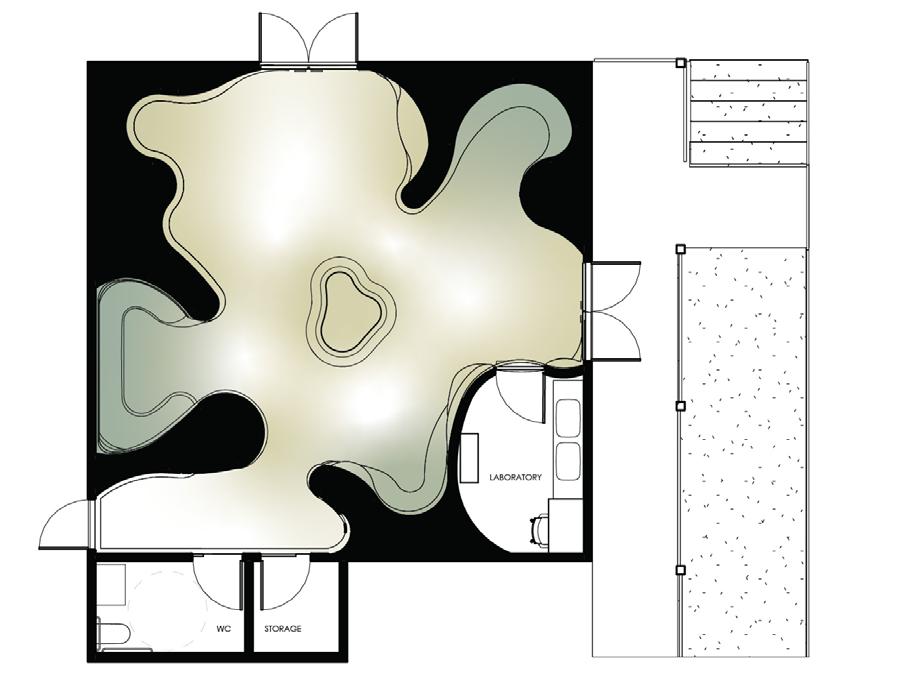 REFINING THE TRACED FORMS CREATING A FLOOR PLAN WITH ORGANIC CIRCULATION.