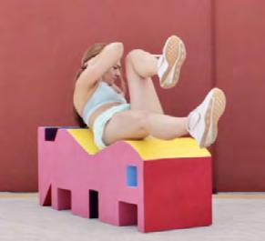 This colorful device was designed as a full-body workout exercise instrument, with each color implementing a particular exercise that could be performed on each surface of the sculpture.