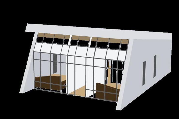 The unit design incorperates private space and semi-public shared space, with an interior walkway to act as a connective element.