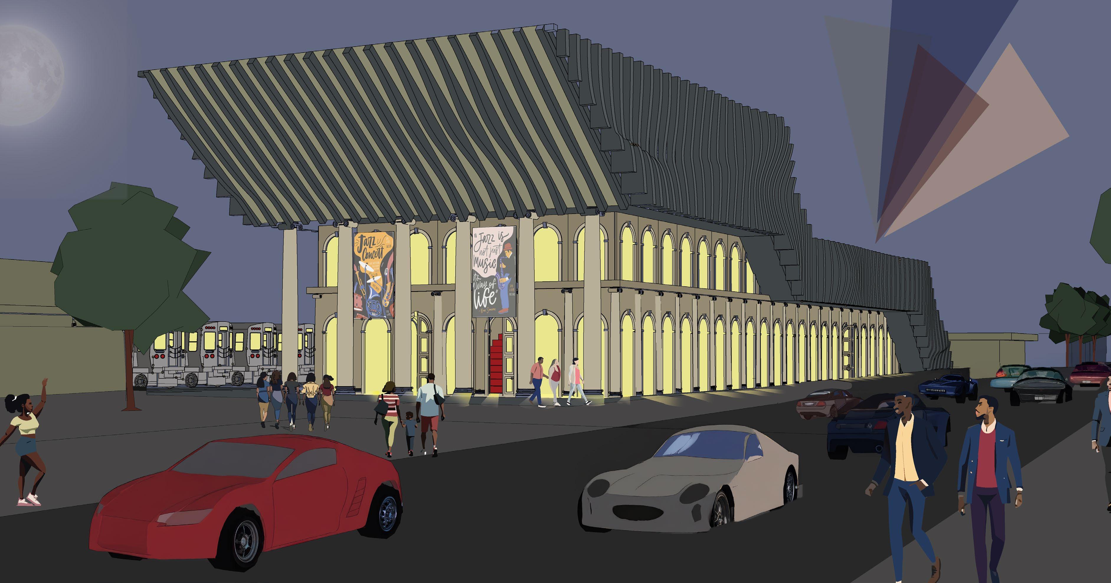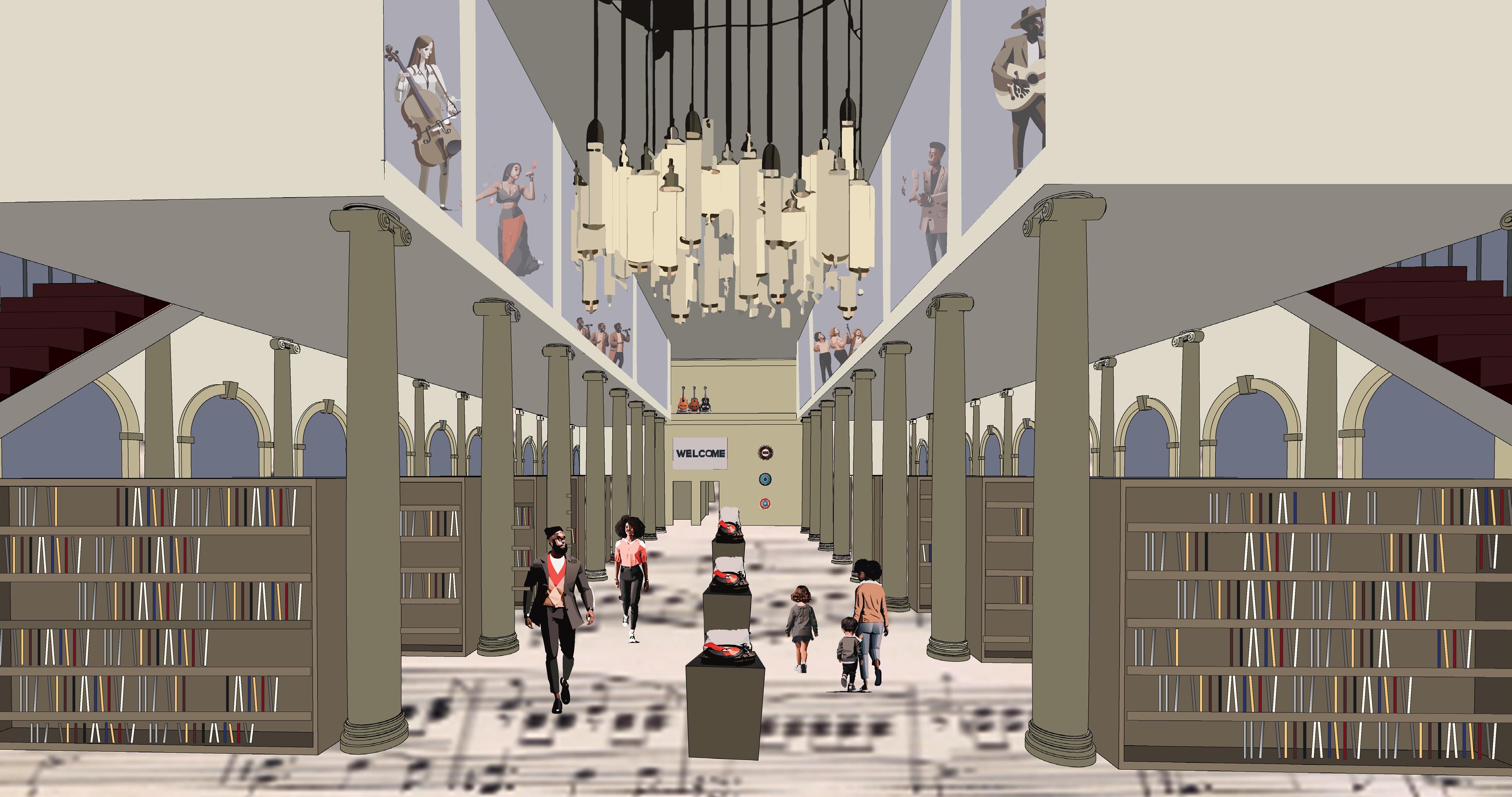 This project is a group project completed Junior year. Our assignment was to design a tool library, and we created a library for music. The project is a tribute to Jazz music, with multiple different venue spaces and areas to allow for the user to choose their experience. The west side of the building is individual and family exploration and the east side is a journey to large venue spaces and a more grand experience.