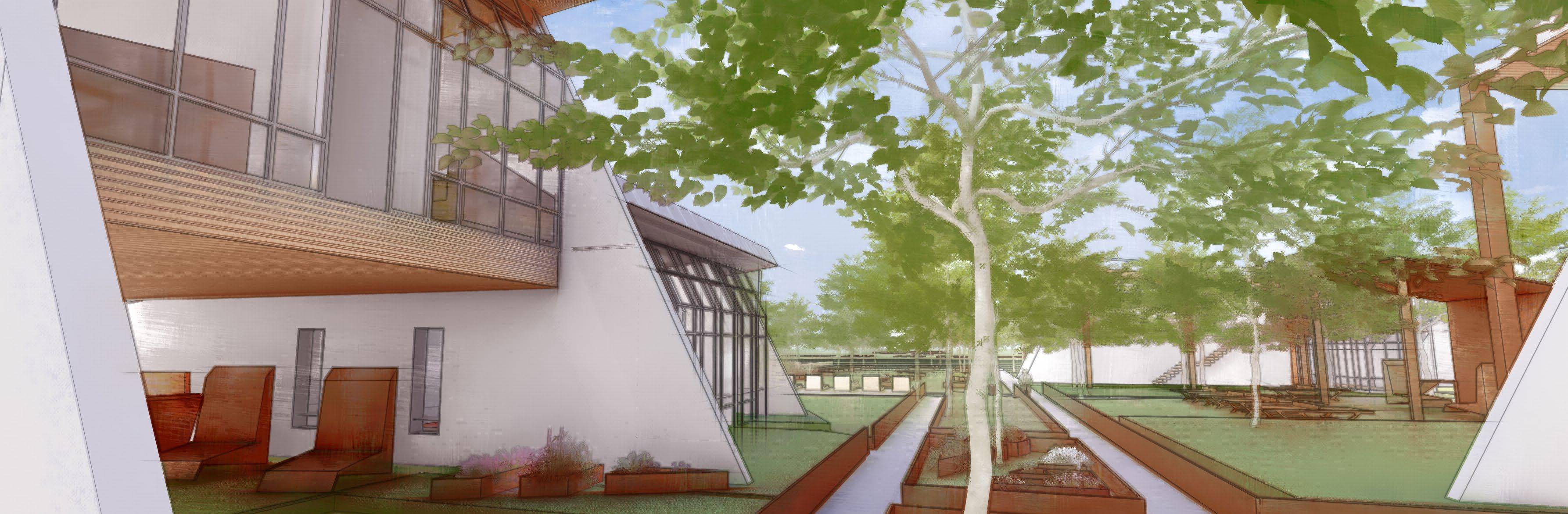The Champaign Market consists of two seperate buildings with a connecting courtyard between to integrate greenspace interaction within the grocery experience. Healthy eating and quality produce is highly valued in today’s society, which is why I have incorporated hydroponic towers for maximum produce production and quality assurance. These towers are made of recycled I-beams with a perforated bottom to water from the soil to the leaves.