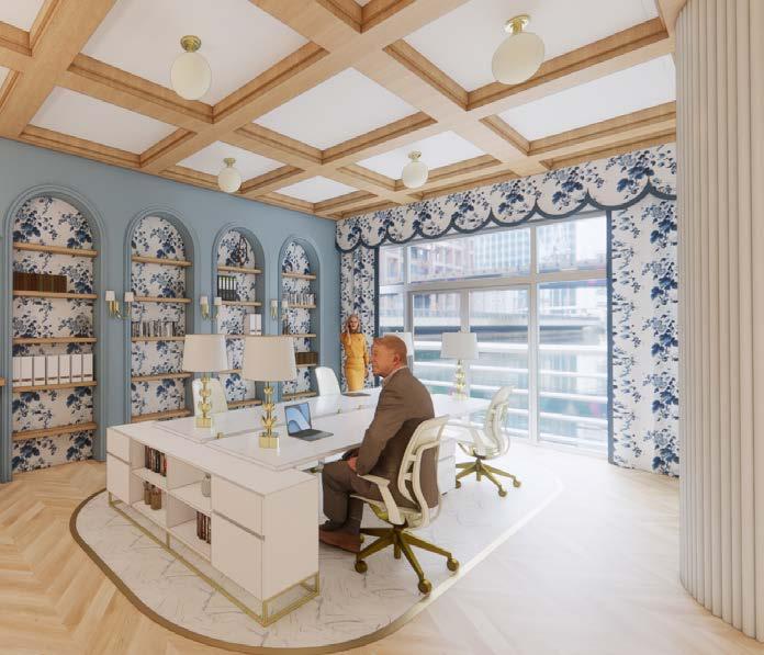 Fleur epitomizes the French aesthetic, seamlessly blending professionalism and tranquility. Inspired by chic elegance, it envelops visitors in a serene ambiance with a soothing light blue palette. Through natural lighting and biophilic elements, Fleur fosters productivity and well-being in both corporate and retail spaces, embodying the timeless allure of French design.