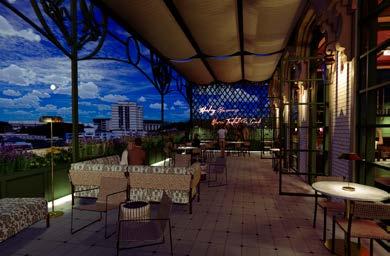 Flying Monkey is a rooftop bar that's as playful as it is wicked, drawing inspiration from the mischievous energy of the Wicked Witch and her winged companions. A bold mix of patterns, moody colors, and layered lighting creates an enchanting atmosphere where whimsy meets rebellion.