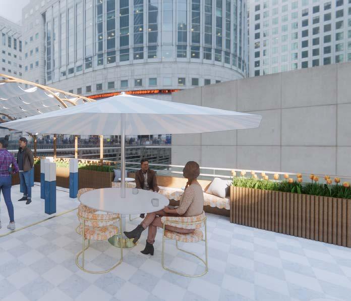 The rooftop bar features a versatile central bar that can be closed off from the outside, offering privacy and year-round usability while maintaining its sleek aesthetic.