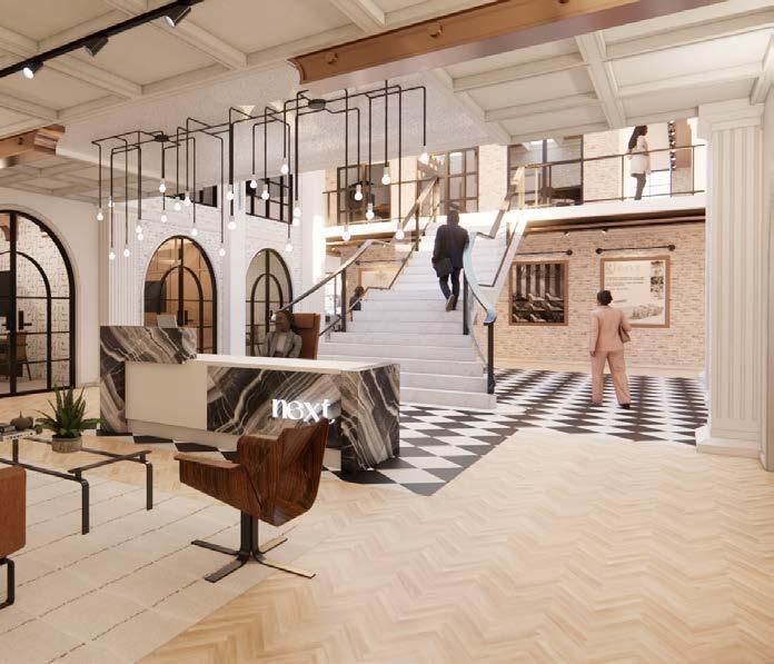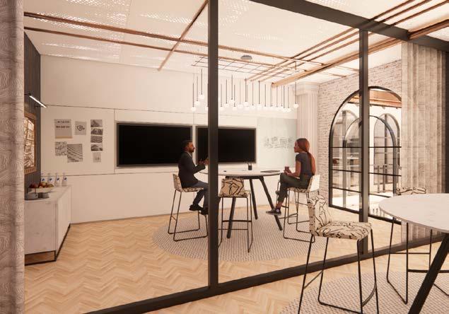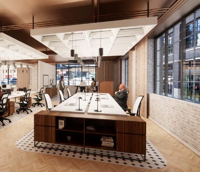 Modern lighting, inspired by the fair's groundbreaking use of electricity, illuminates collaborative work areas, while indust rial textures and flexible layouts foster innovation and adaptability . This headquarters celebrates Chicago's legacy of progress and creates an inspiring, dynamic environment for shaping the future of advertising.