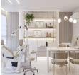 The reception area is thoughtfully designed to enhance both functionality and comfort. The reception desk offers staff ample workspace, ensuring efficiency and organization. Natural daylight floods the area, creating a welcoming and bright atmosphere, while adjustable window treatments provide flexibility to control lighting and privacy as needed. This combination of practicality and comfort promotes productivity and a positive first impression for visitors.