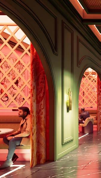 The lobby of the hotel draws guests into a world of wonder and enchantment, echoing Dorothy's first moments in Oz. Vibrant hues of emerald green, gold accents, and whimsical design elements evoke the magical essence of the Emerald City. The space is a sensory awakening, with dazzling light fixtures and intricate patterns creating an otherworldly ambiance. Like Dorothy stepping into a new realm, guests are invited to leave the ordinary behind and embrace a journey of discovery and awe.