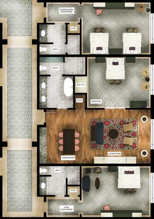 The Emerald Suites reimagine the journey home, blending the timeless charm of Kansas with the elegance of the Emerald City. With a foundation of classic, traditional design, the space is elevated by subtle Art Deco details and a formal yet inviting atmosphere, creating a harmonious balance of simplicity and sophistication.