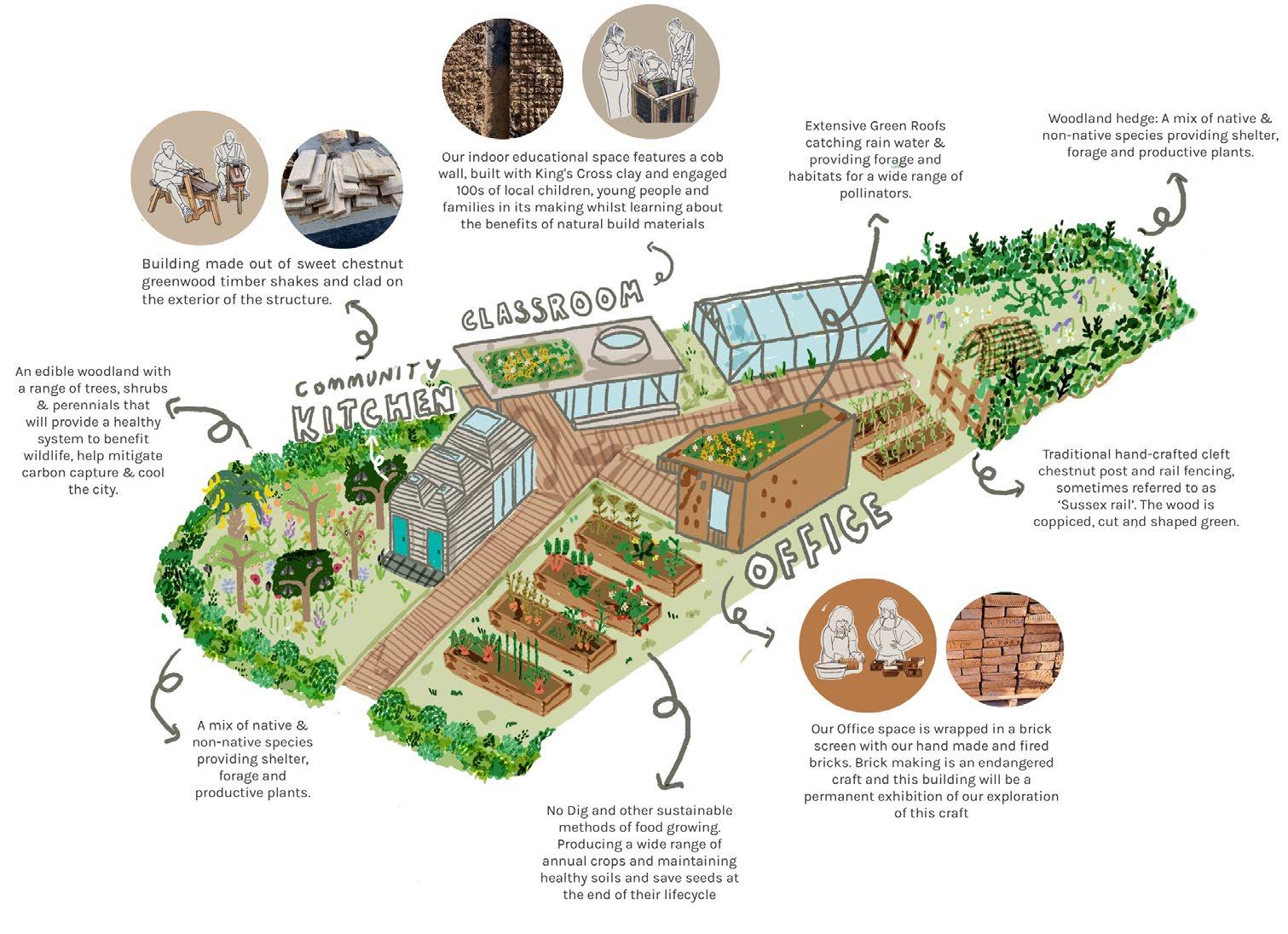 Since September 2024 I have been volunteering with Global Generation on the Triangle Site’, learning to use natural and reclaimed materials to build structures to house programmes in their new permanent community garden. The techniques I have learnt include cob construction, straw insulation, wooden shingle making for cladding and willow weaving for wattle and daub walls. The project was designed and led by architect Jan Kattein, however, the garden is a co-creation with the local community. These sessions have allowed me to utilise my hands-on fabrication and construction skills which I have gained through my undergraduate studies, and translate them into existing projects.