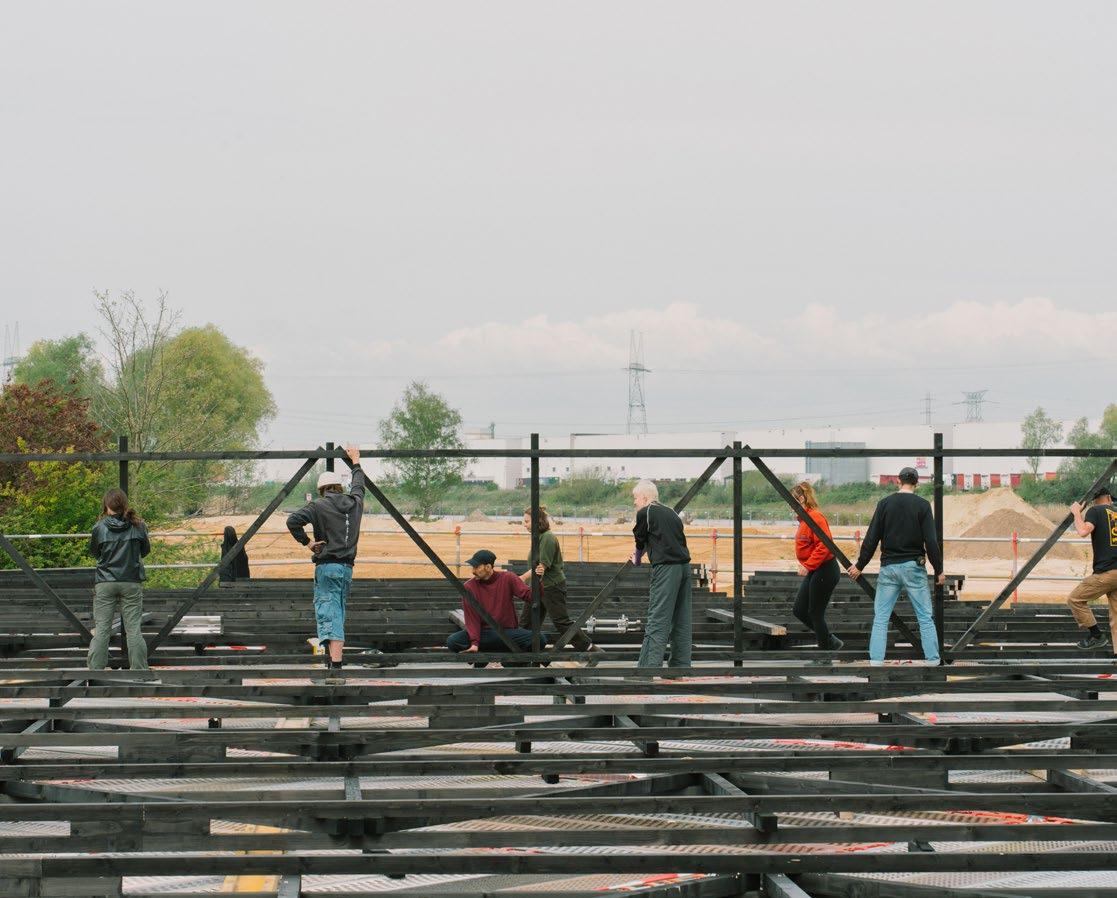 Spending a month working alongside Stan Vrebos in the summer of 2025, I had the opportunity to help XRDS festival’s stages come to live in Brussels. I had the responsibility of leading the build of one of the three main stages, Outskirts, at the festival, working in small teams of volunteers assembling scaffolding and doka beams to create beautiful ephemeral structures, designed by Stan Vrebos.