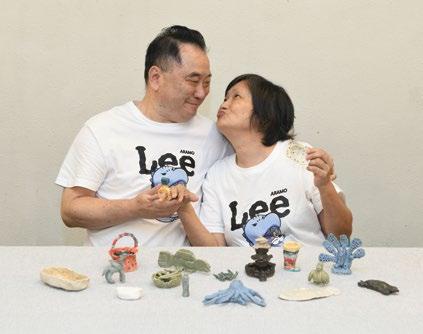 Crossing paths with 1st Step Association’s support group for carers brought us to even more poets of life. At our first meeting, two couples travelled all the way from Fanling to the centre in Kai Yip Estate. Over conversations, it dawned on us that most buses in Hong Kong only offer one space for wheelchair users. If more than one person needs it, the second must wait for the next bus. Later, social worker Hiu-yan tried to book a rehabus, and we realised how hard it was to secure a seat. Despite these challenges, the participants’ always made our day with their enthusiastic attendance. We were blown away by their creativity. Although some were a bit unsure at first, clay quickly worked its magic. Their inspirations flowed boundlessly: charming infant toys, sushi with popping roes, a dinosaur guarding eggs of friendship, a wish-making bunny, a giant ring marked with “I ♥ U BABY”, a humphead wrasse eventually collected by a facilitator, a scenery “as you see it”... These unadorned expressions speak lucidly of life, feelings and imagination. Over ceramics, a community formed. People laughed, shared and connected. In the final tea gathering, the participants surprised the team with a handmade card. It holds this original limerick: