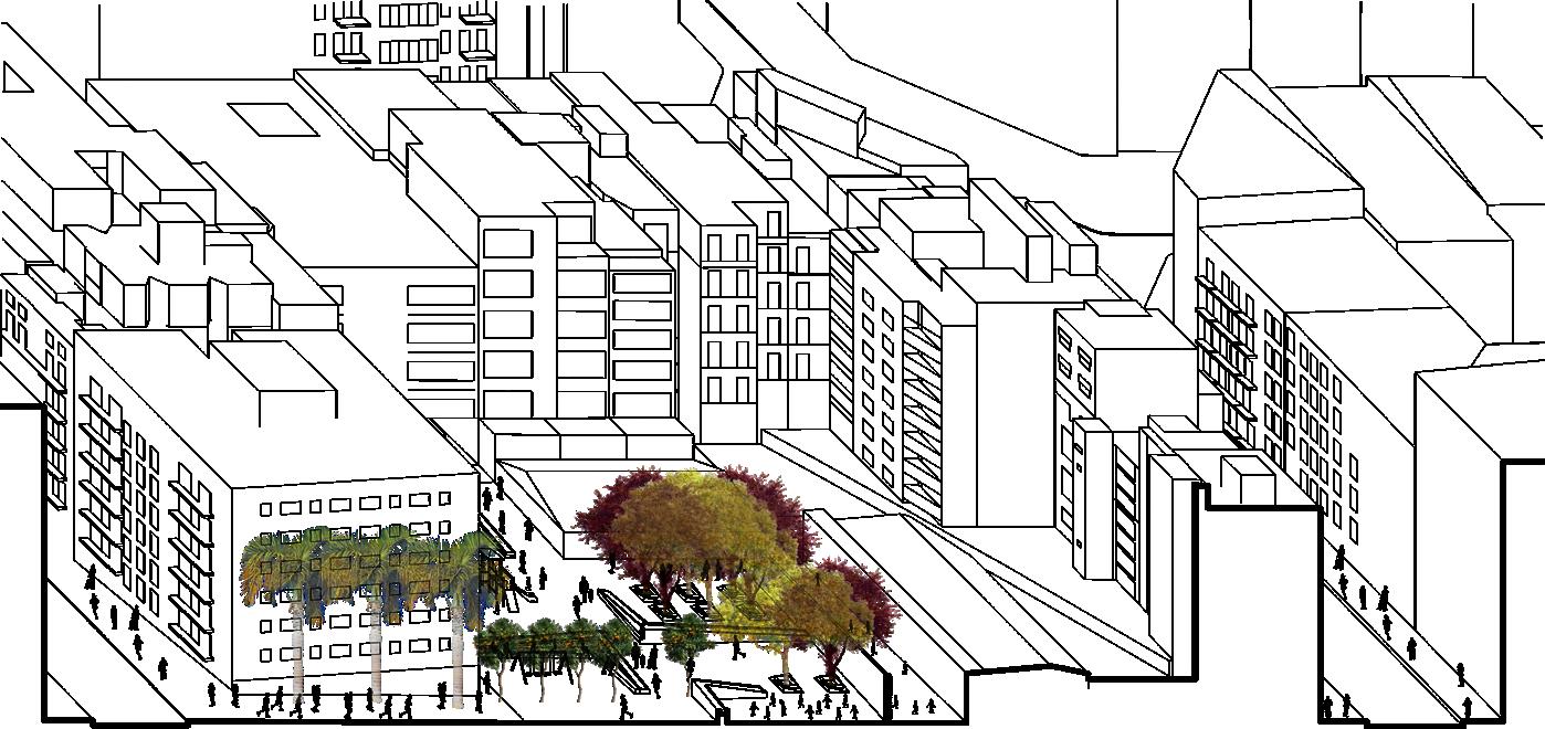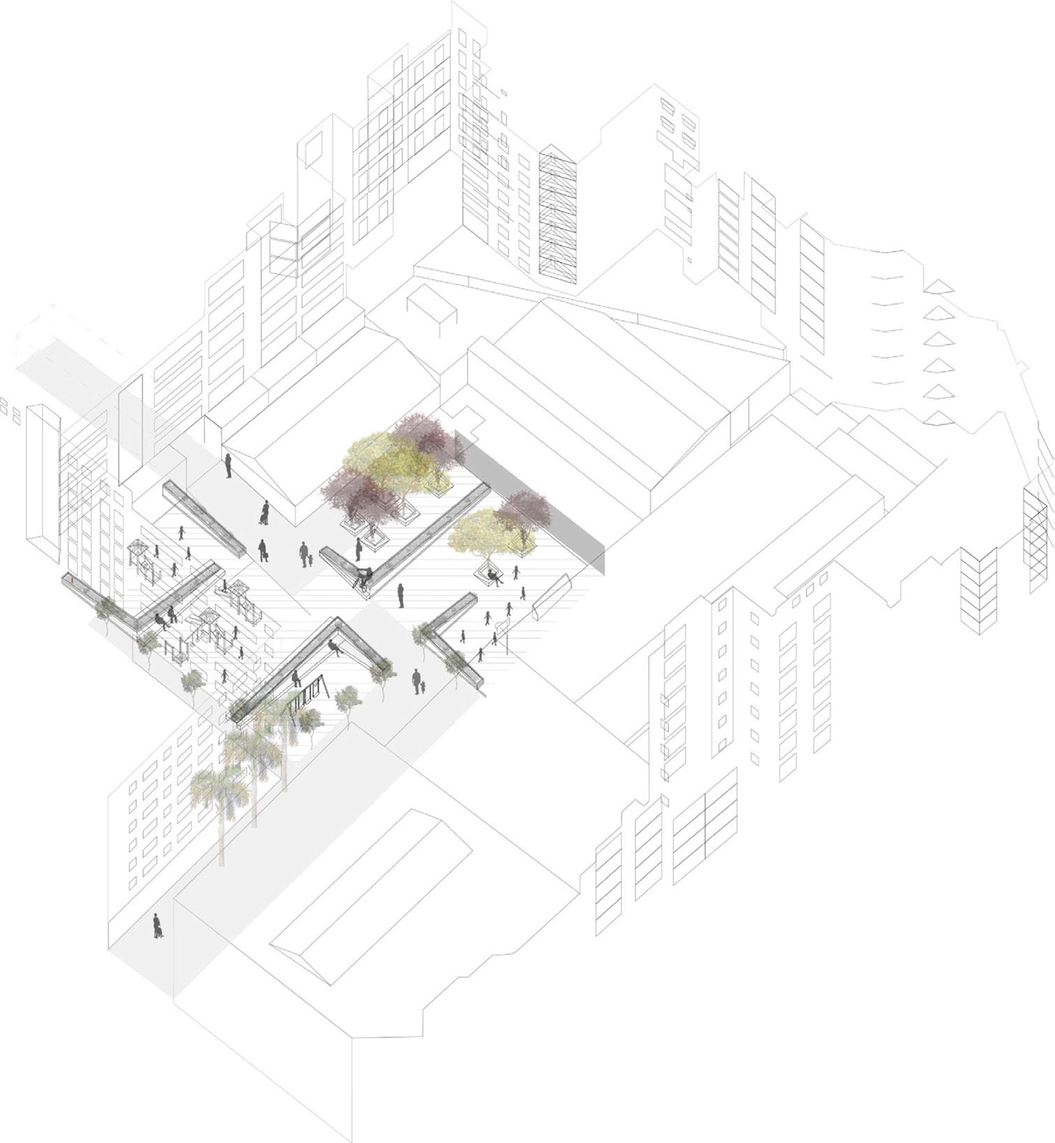 Interior illa was based in barcelona. The challaenge was to figure out what could be done in a space that already works for the public. Responding to the immediate context with out over doing or forcing structures into the space. This resulted in the space being something that could be occupied year round and have an experince in the different seasons. The trees were chosen specifically by looking into the other spaces with in the area and trading ones that were not needed to ones that could enhance the space.