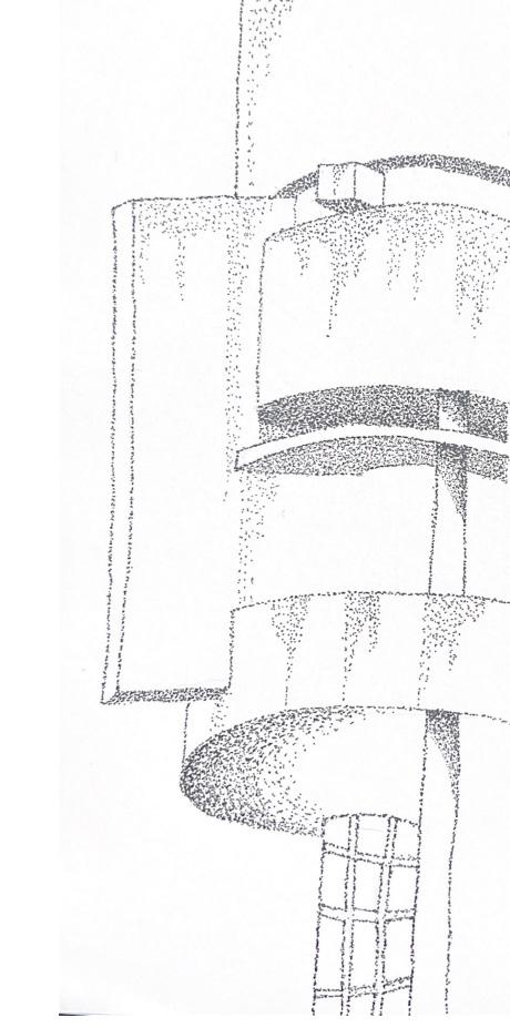 In this exercise the idea of simplicity and abstraction was the goal. Starting this process with pictures of objects containing a point, line, or plane. Then abstracting ideas from the photos taken, break them down into a drawing that would be used to make a model. In the process after the drawings for the modeling it was separated into segments making the entire model.