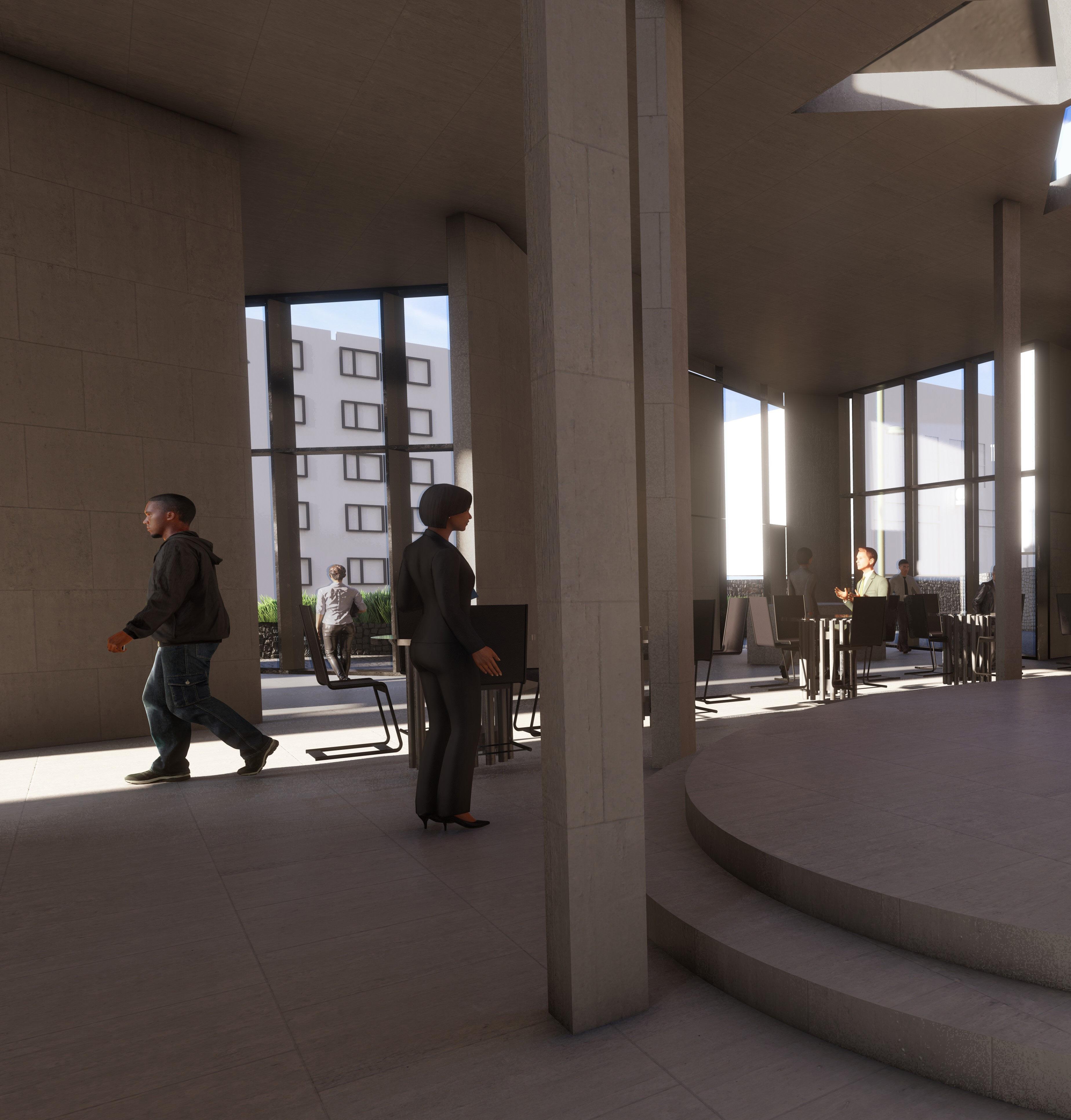 Located in Sweet Auburn, Atlanta. A empty parking lot was meant to be reused to help boost the current community located in the area. Atlanta is known as a hot spot for some of the greatest hip-hop and rap artist in history. Taking that into account there isnt a lot of places for artist to get recongized or have the resources to record and perform as a local. This brought the choice of bringing a performance and recording studio to the communtiy.