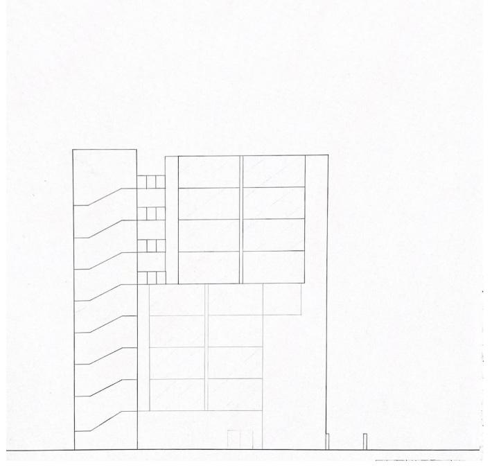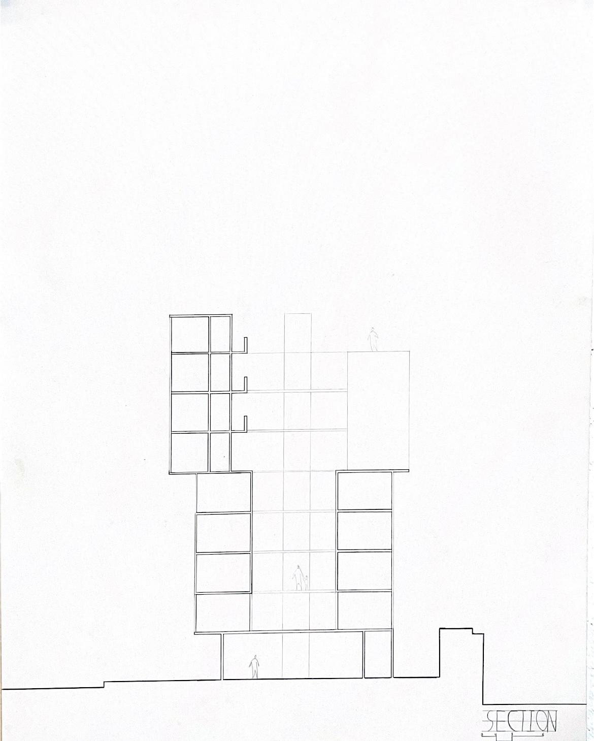 In this exercise the objective was to take these walls with sixteen feet of space between each other and make it an occupiable space. Through the process a way to have light into the spaces became challenging. Depending on the floor the wall would be high enough to support privacy but leave an opening at the top to get light into the space without removing the wall which was immovable.