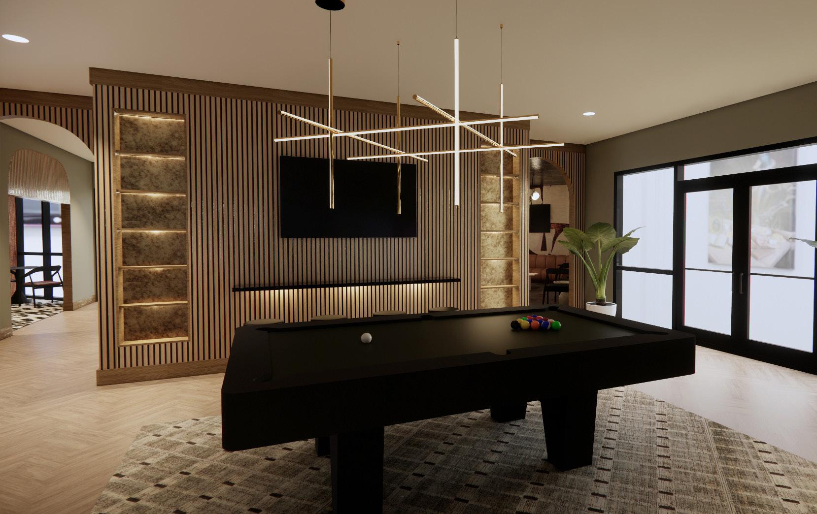 As an interior designer, I have always been drawn to hospitality design—whether creating a bar or restaurant, or applying a hospitalitydriven approach to a broader range of spaces, such as multifamily clubhouses, pool houses, or a golf club. Regardless of the setting, I focus on the details that elevate a space and tell a story, always exploring ways to craft a unique experience through thoughtful combinations of color, pattern, and material.