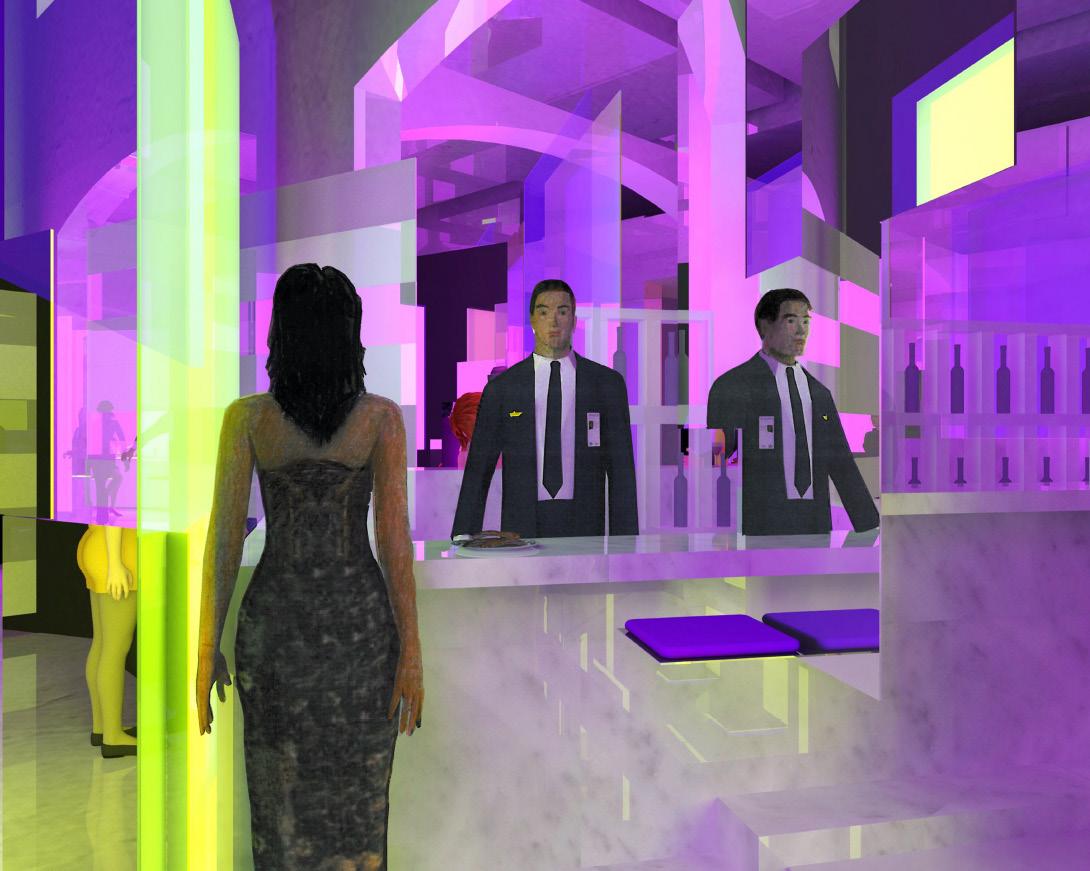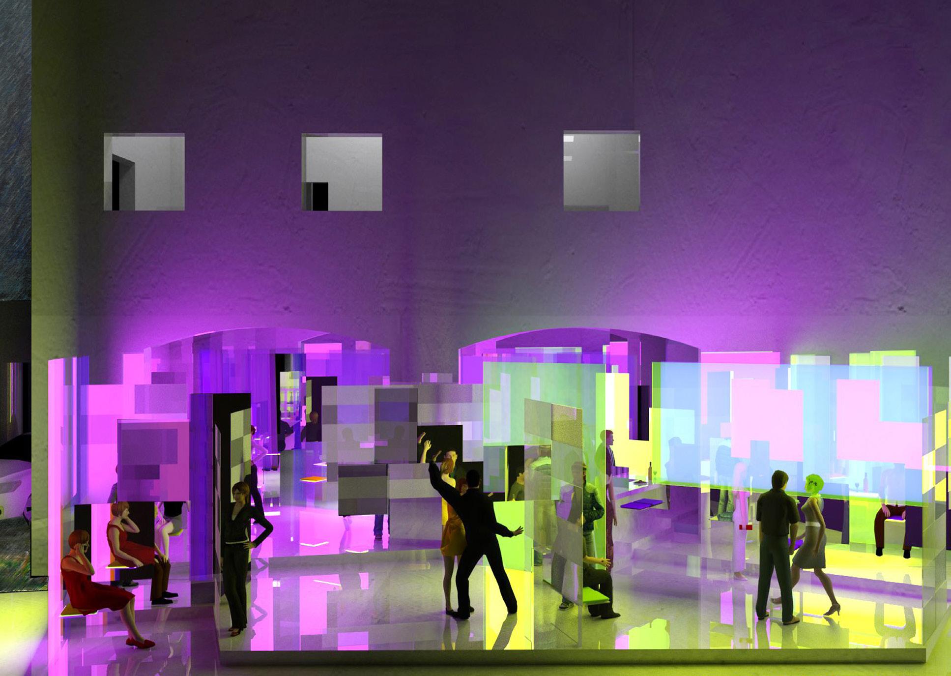 My idea was to design a nightclub for conservative societies, where night life is not fully accepted. To balance out this situation through the design of the space, I came up with a concept that allowed people to be seen but not identified.
