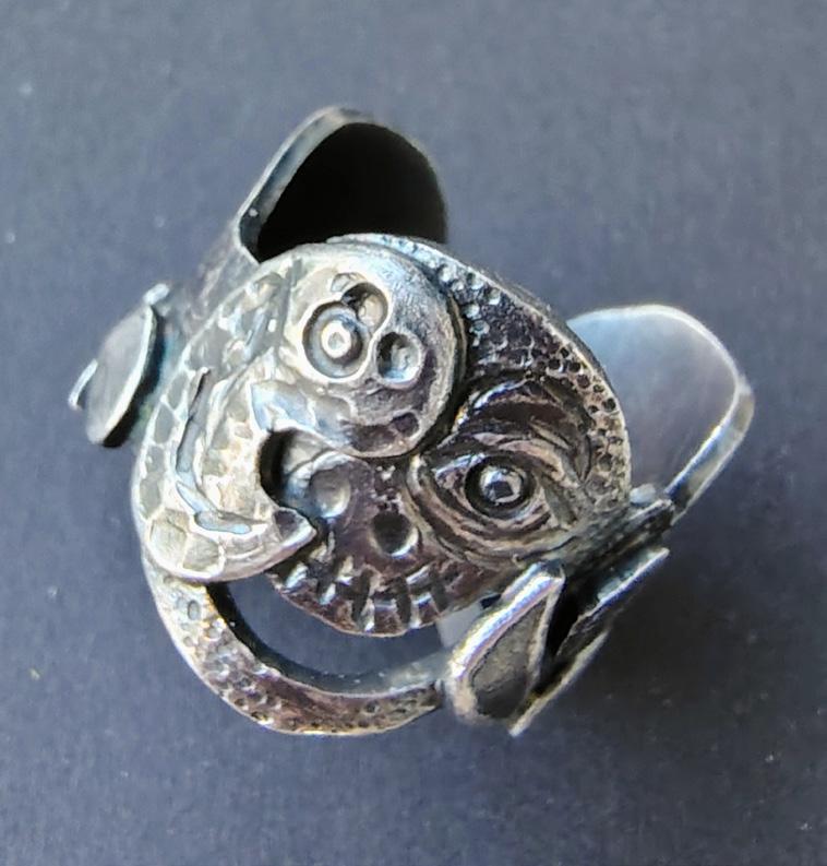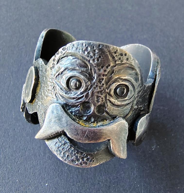 For the Jewelry Design class, I designed and handcrafted a Sweat Soldered Ring, inspired by the traditional demon masks of Sri Lanka - a craft that originated from an ancient belief that demons are capable of healing disesases found in man. The ring depicts 3 such demons with healing powers.