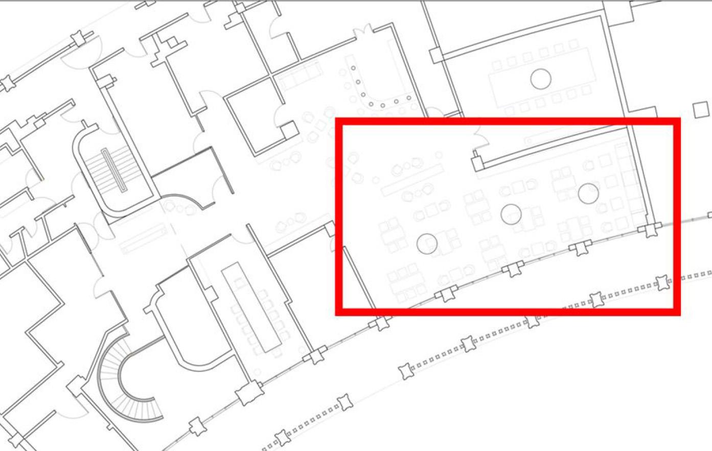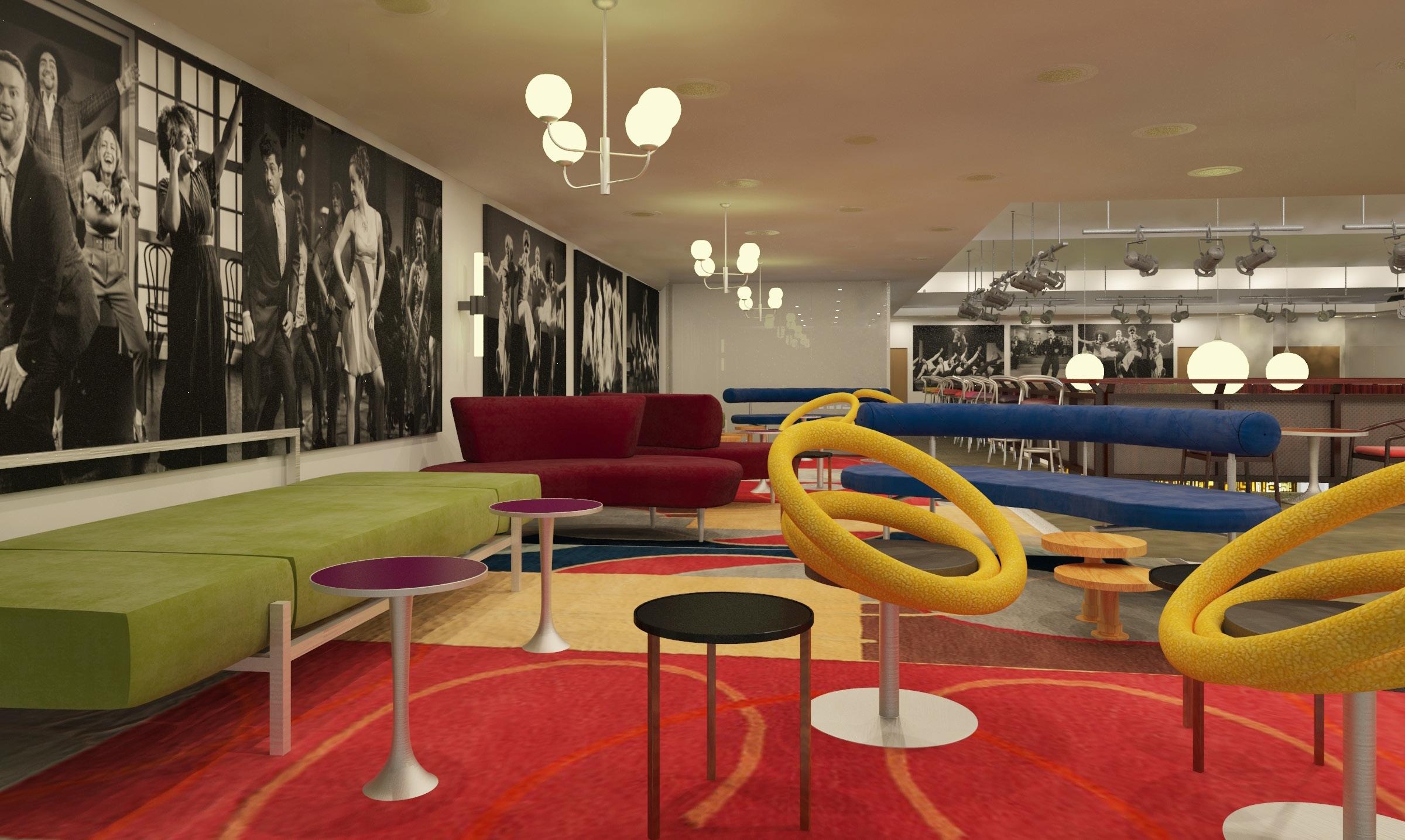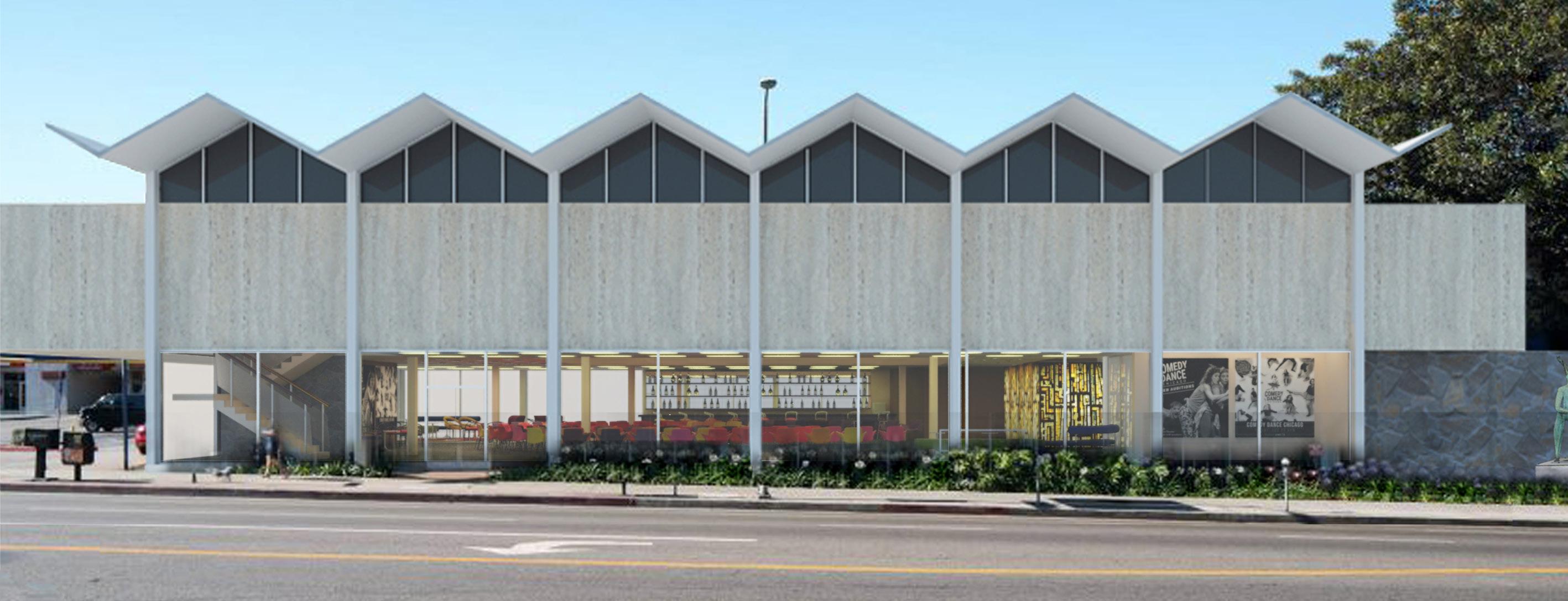 In the proposed design, character-defining architectural elements were preserved, along with their material finishes, as is required in Historic Preservation. To hold comedy shows, a thrust stage was incorporated into the design with the “Darricarre” screen (a significant historic element of the original interior) as its backdrop. The existing glass partitioned spaces were utilized to create studio areas to hold dance classes during the day.