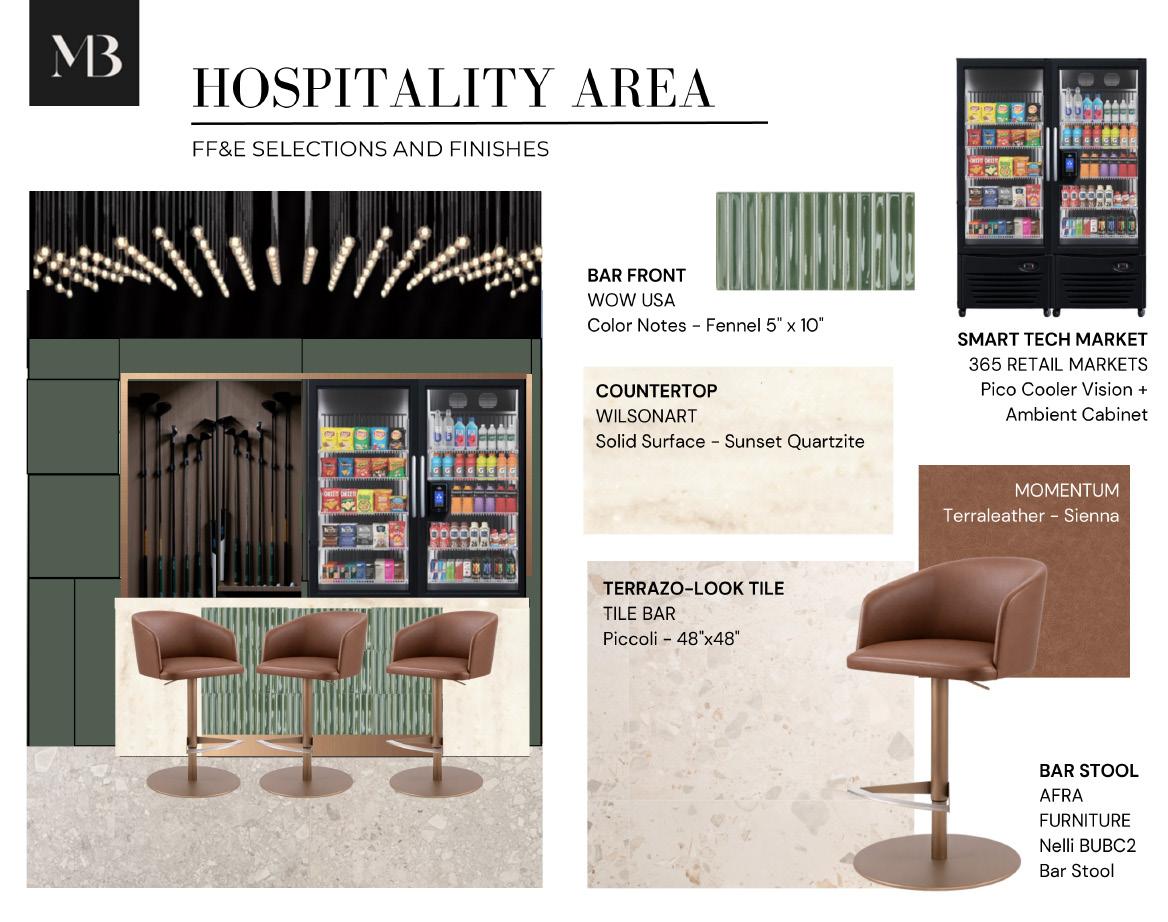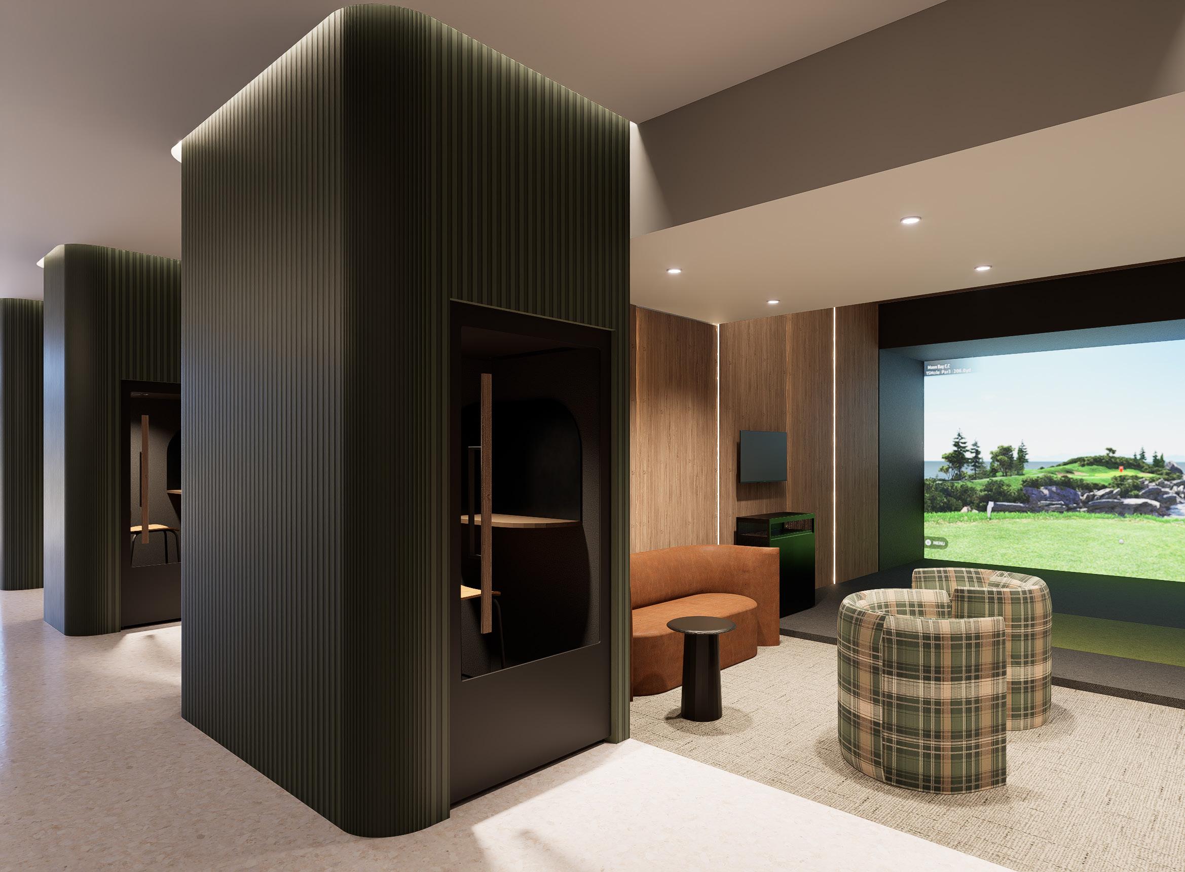 The project included designing the lounge spaces and finishes for the simulator bay area, virtual green putting area, hospitality bar area and conference room.