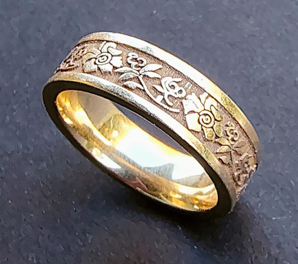 Also included is the wedding ring I designed for my husband, which was an interpretation of “Madara”, a mythological flower that grows in heaven as per Sri Lankan folklore. Blended into the floral design are the letters for “Ma-da-ra”, in my native language “Sinhala”.