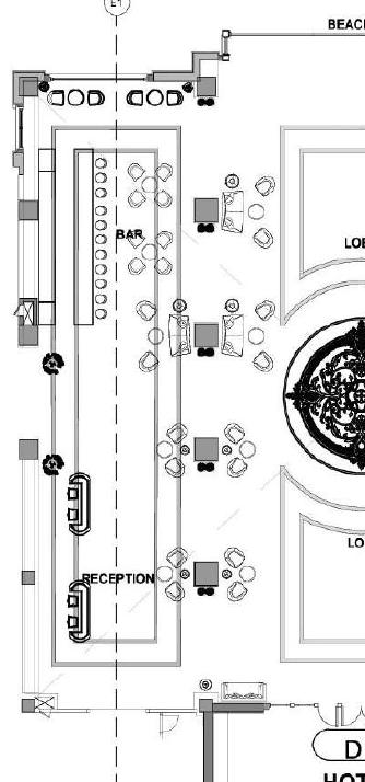 1) Centrally located bar that opened both to the drinks lounge and dining area.