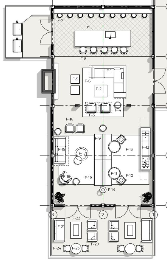As the Interior Designer assigned to the project, my initial role was to model both the existing space and the new design in Revit, and create 3D renderings in Enscape to present to the Client. Later on, I also created the technical drawings for this project in Revit (Bid Set), and went on to make adjustments to the design manual and FF&E pricing sheet as needed.