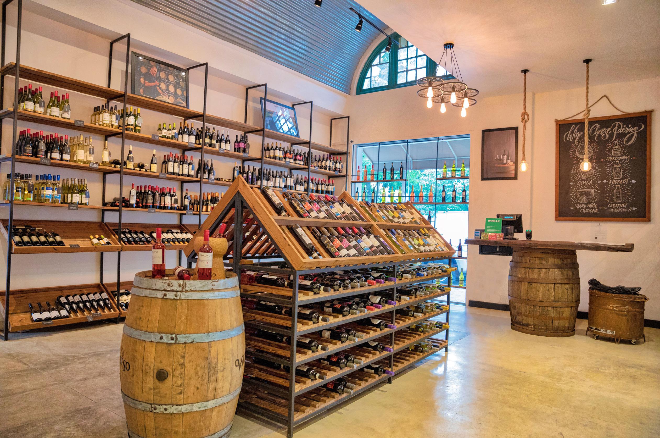 2) Back wall feature with integrated grab & go smart coolers, and golf storage / display