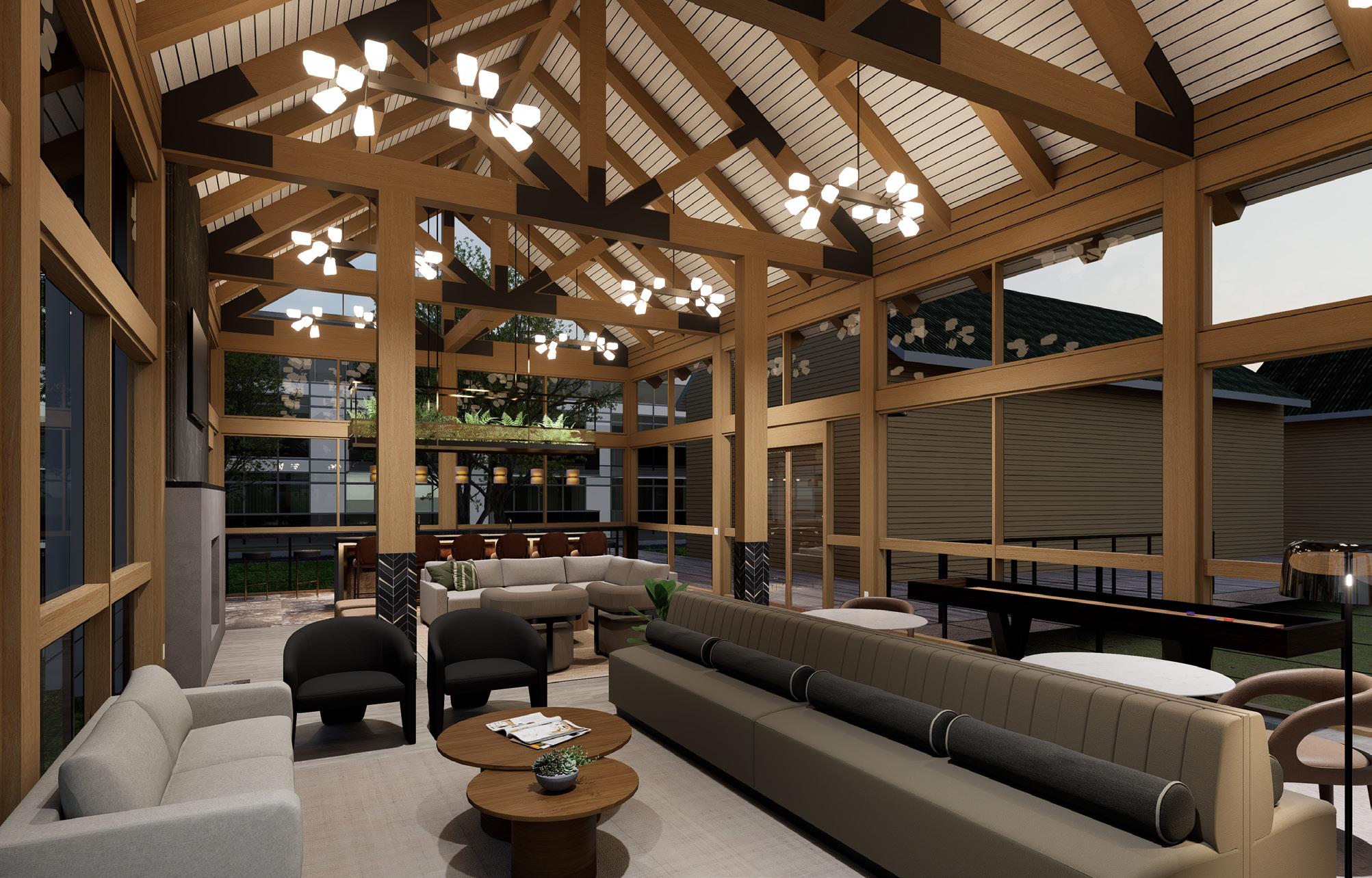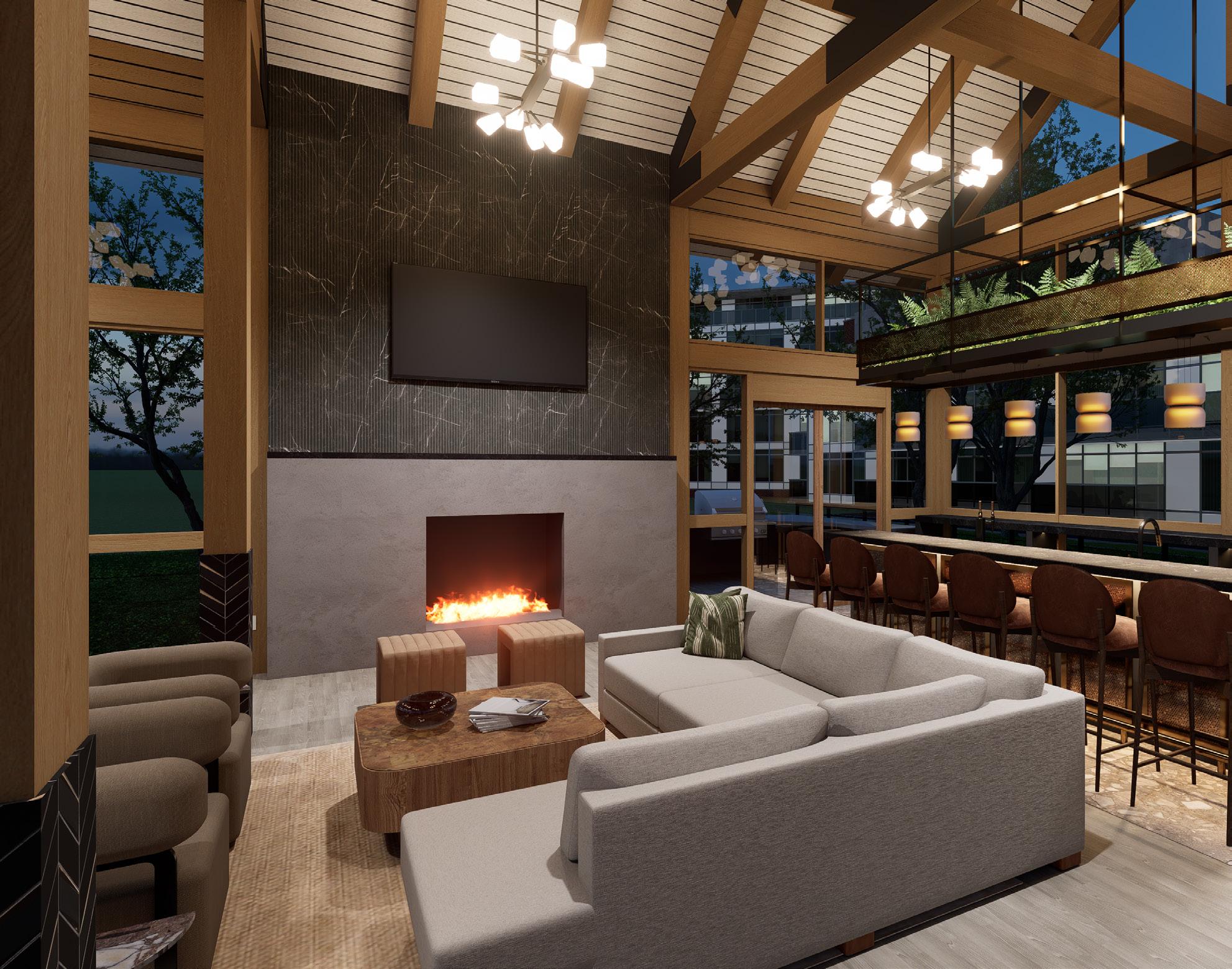 As the Interior Designer assigned to this project, my role was to redesign the clubhouse with new lounge groupings, a gaming area, new fireplace finishes, and turn the existing kitchen counter into a bar area that encouraged gatherings next to the outdoor grill station. New lighting was also selected for the space and the ceiling was proposed to be painted white. I also prepared a detailed FF&E pricing sheet for all the furniture selections. The final renders for the space were created by the in-house Render Specialist.