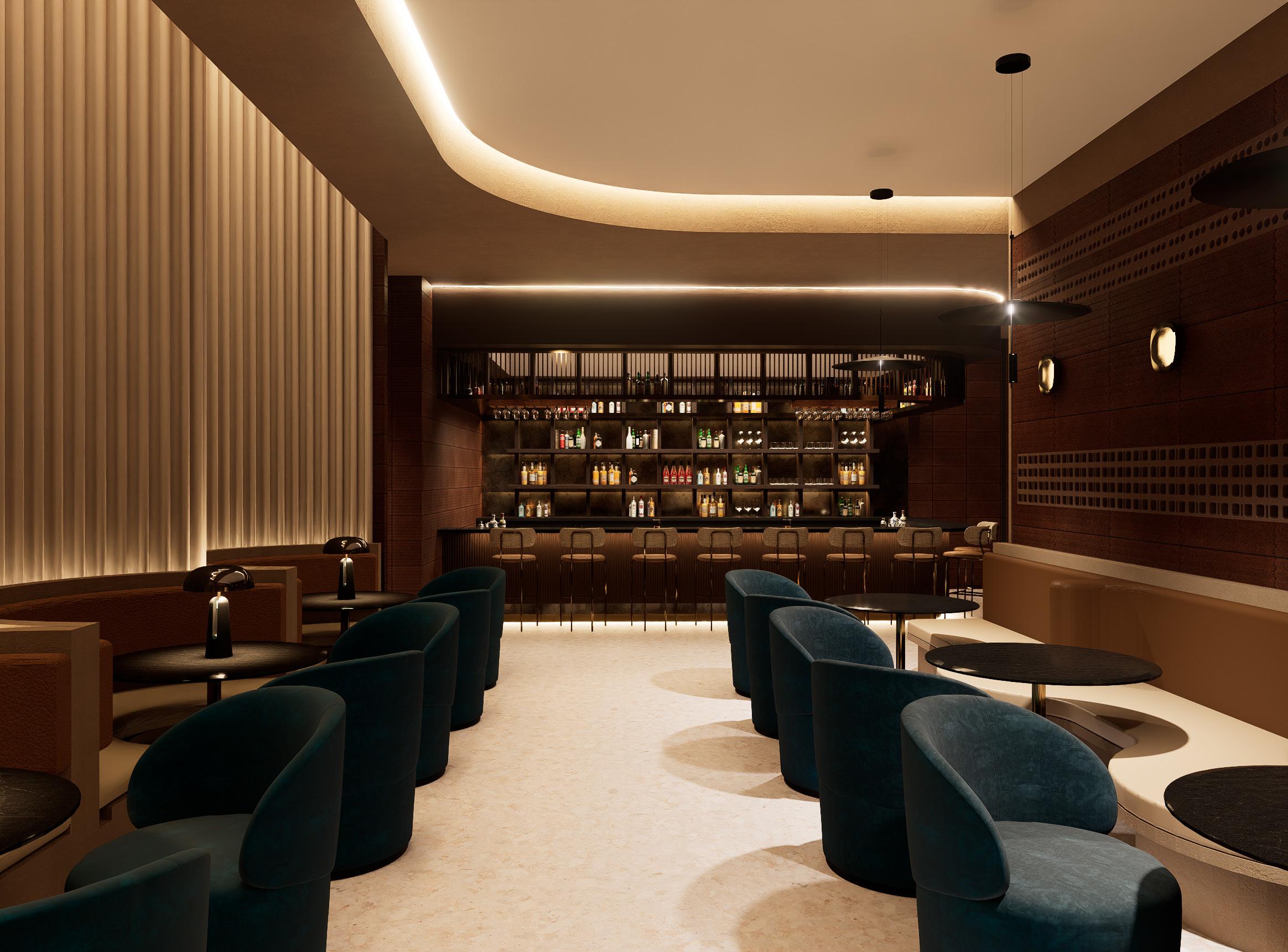 Great care was given to the guest experience— from the moment one enters the space. The bar was conceived as the initial “wow” moment, immediately capturing attention from the check-in and waiting area. Centrally located, it was intentionally designed to open seamlessly into both the drinks lounge and dining area, acting as the heart of the restaurant.