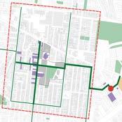 The green corridor strategy also provides more urban canopy cover, and it aims to improve walkability. It is divided into two stages: firstly, to support the medical network (purple areas) while connecting to the superstop (red dot) and new hospital site (orange triangle), and secondly, expansion of the green corridor throughout main roads and street networks.