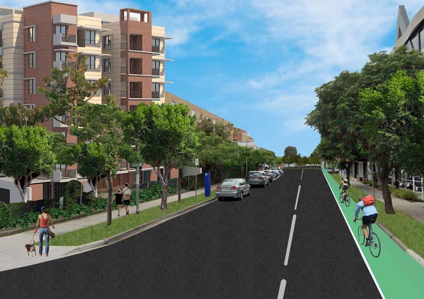 Dedicated bike lanes along streets in within the precinct aims to encourage active transportation.