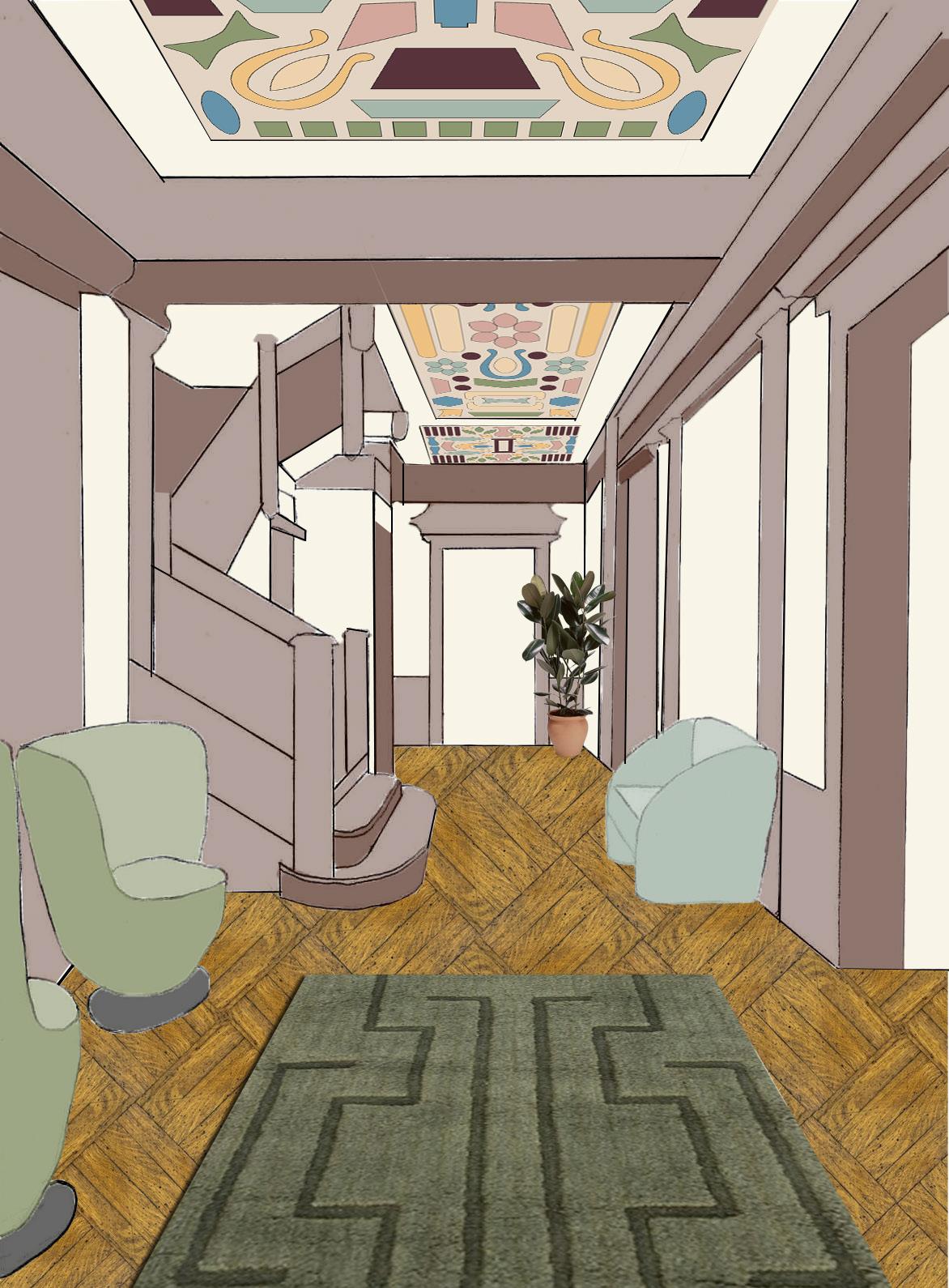 rendering of the updated foyer from the view of the front door